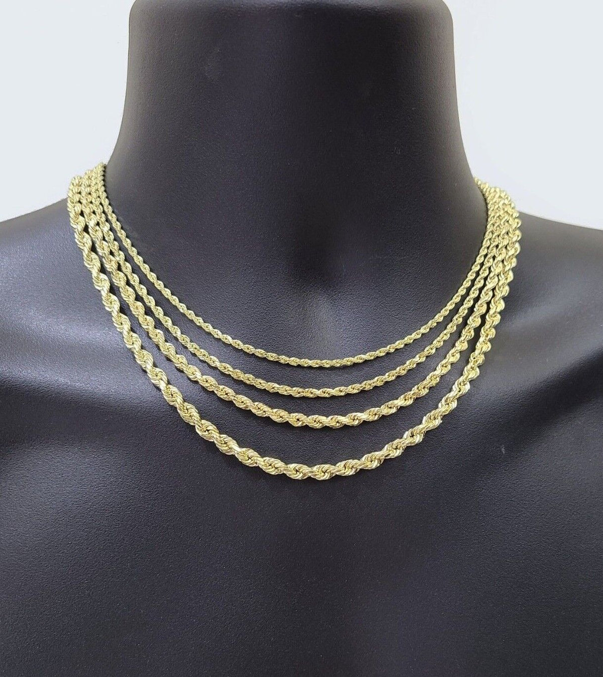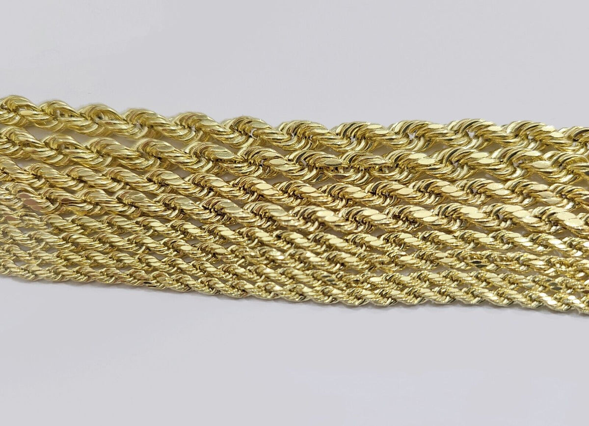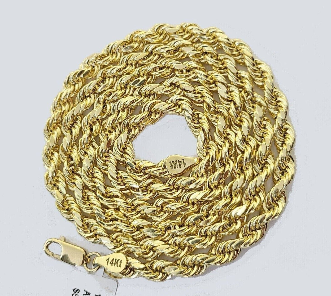 Real 14K Yellow Gold Rope Chain 2.5-5mm Necklace 18-30 Inches Lobster Lock