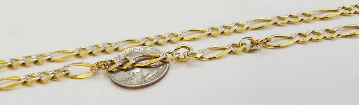 Is Presenting You with This Absolutely Stunning Real Solid (Heavy) 14k Yellow Gold Figaro Link chain 7mm, 22 Inch Diamond Cuts Necklace with Lobster Lock. The links are very strong and solid. These Beautiful Chains will not tarnish, discolor, or fade because they are Pure 14K Gold. We also have them in various another length. Please feel free to contact us if you have any queries regarding the item.