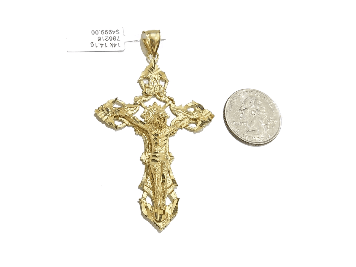 Real 14k Gold Jesus Crucifix Cross Charm Pendant 3" inch 14kt Yellow Gold