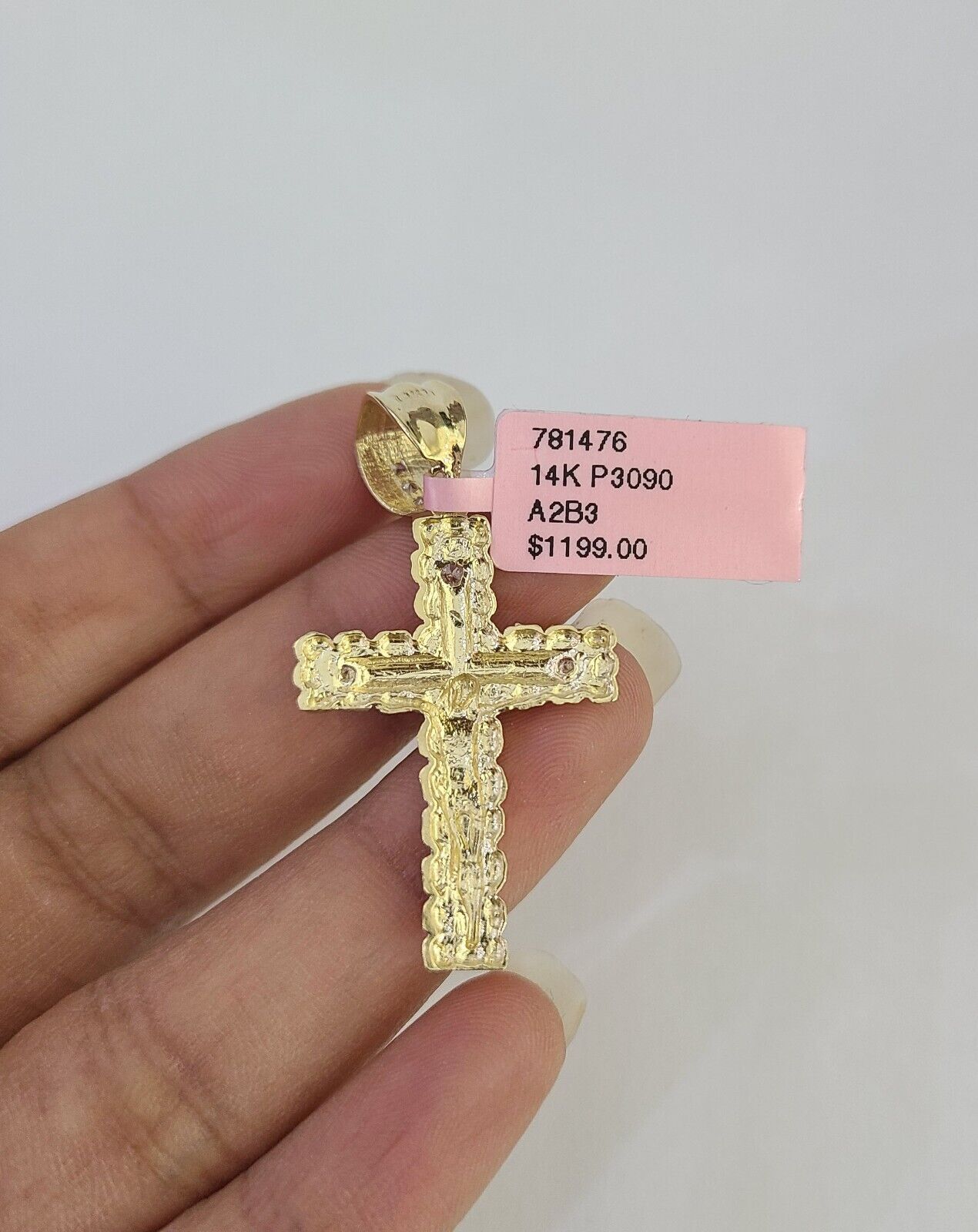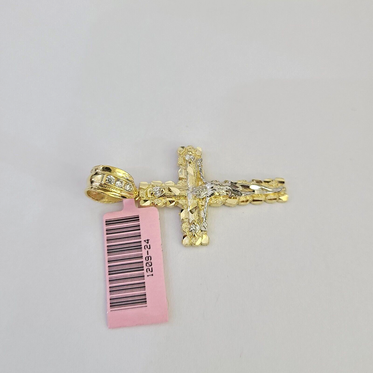 14k Yellow Gold Cross Nugget Pendant Jesus Cross 14kt Charm REAL