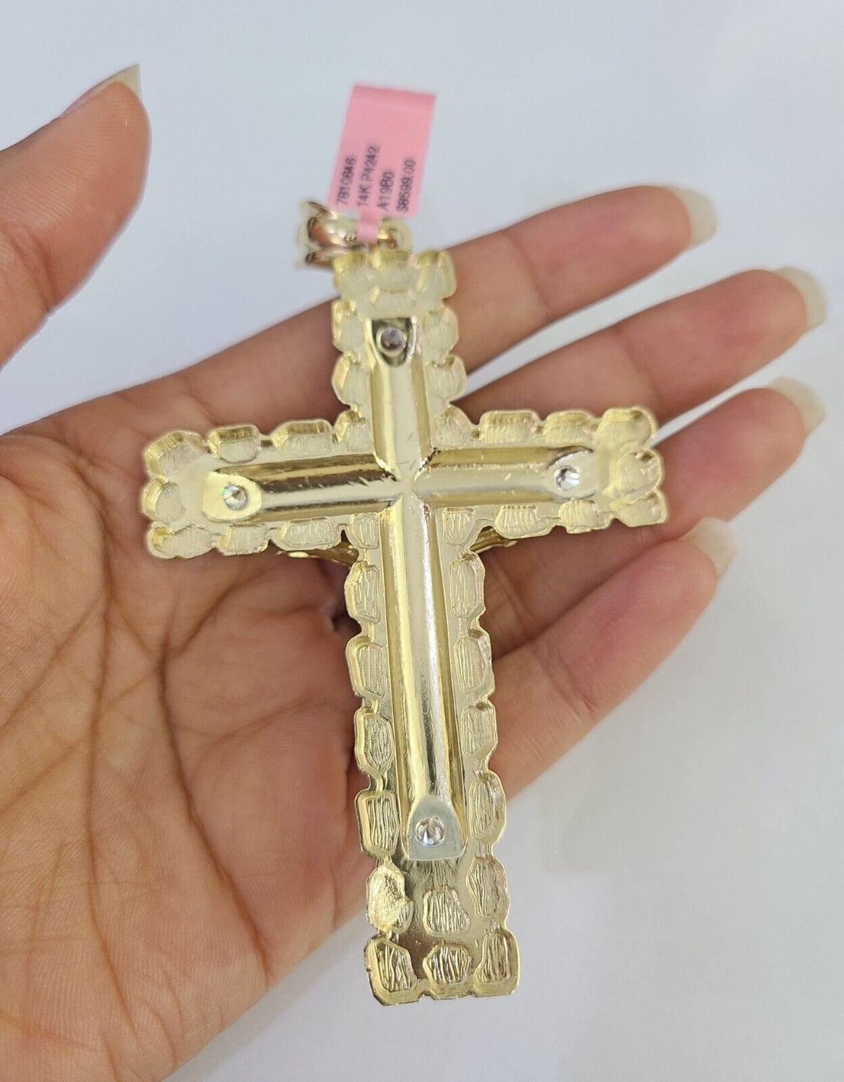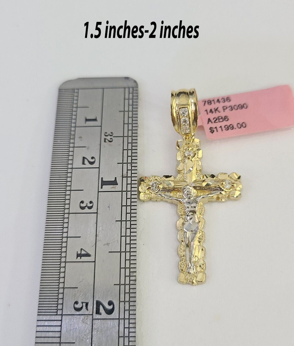 We present You with This Absolutely Stunning Real 14k Yellow Gold Jesus Cross Charm Pendant. It has a detailed cut with a very good finish. These Beautiful Pendants will not tarnish, discolor, or fade because they are Pure 14K Gold. Please feel free to contact us if you have any queries regarding the item.