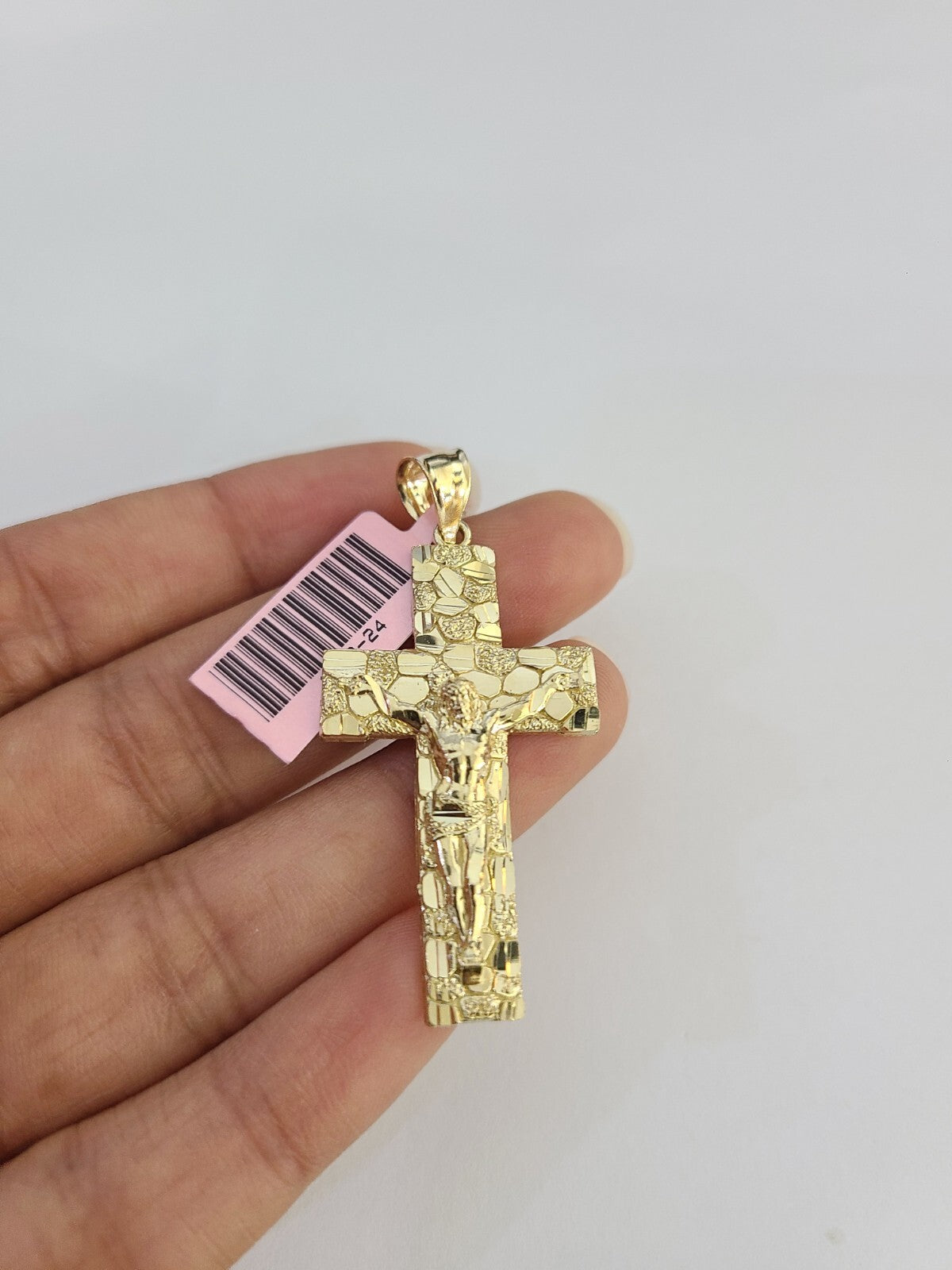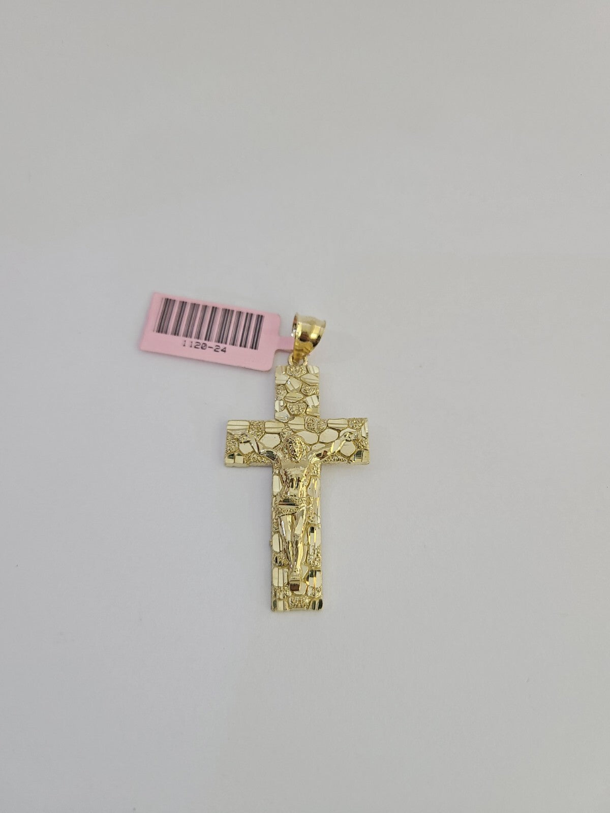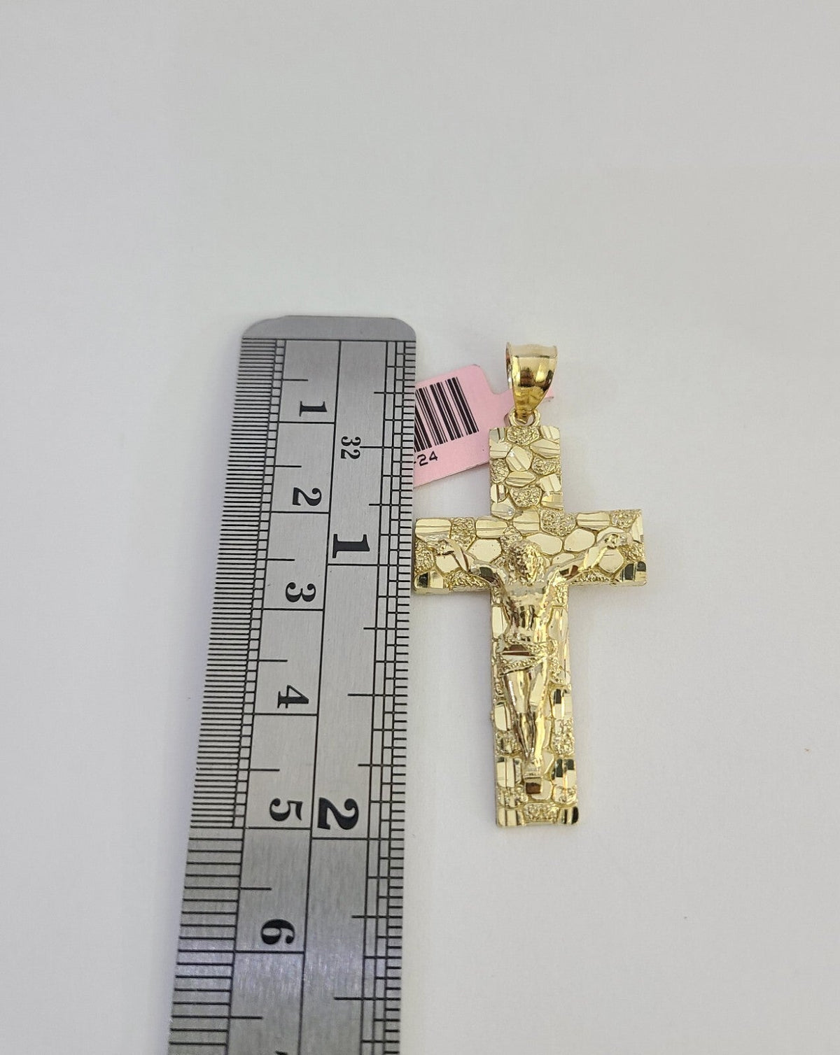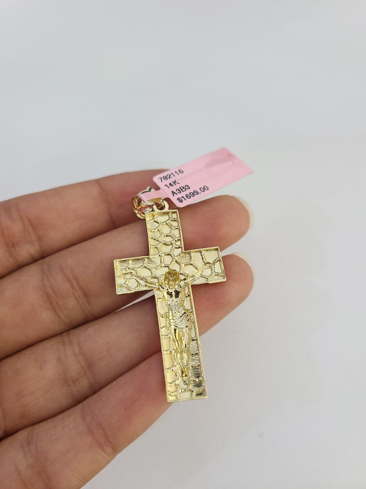 14k Yellow Gold Real (Not plated , Not filled ) Jesus Cross Pendant. The pendant can be worn with any chain. The pendant is considered durable. If you are not happy with the way it looks or feels, we do offer 30 - Days FREE Return shipping. Please note that this listing does not include a Necklace.