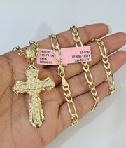 Real 14k Solid Figaro Chain Jesus Cross Pendant Gold 5mm 18–28-inch SET Necklace