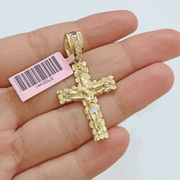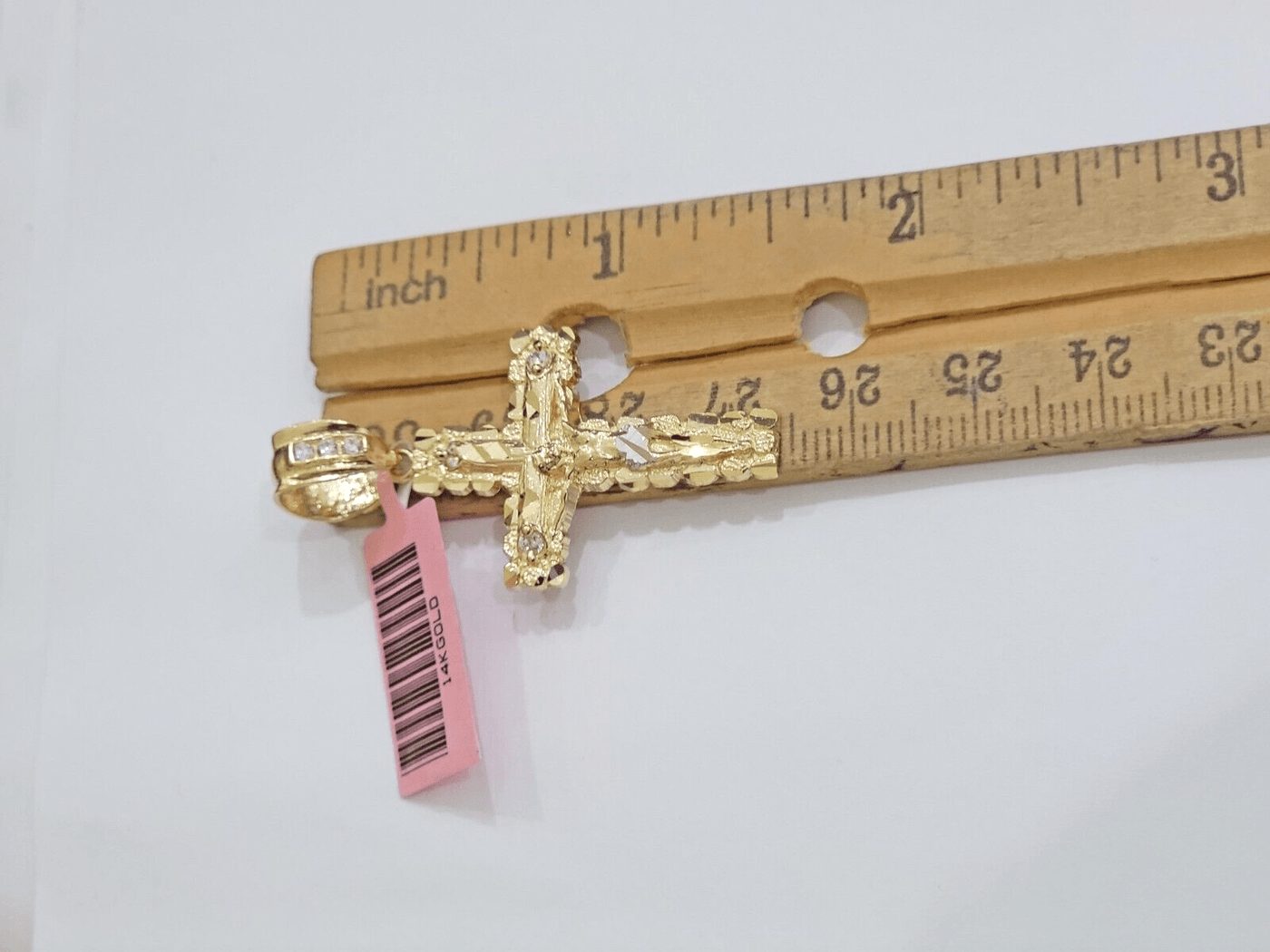14k Yellow Gold Cross Nugget Pendant Jesus Crucifix 1.5 Inch 14kt Charm Men REAL
