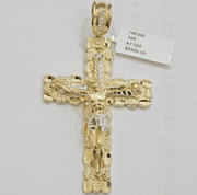 14k Gold Cross Pendant Men's 3.75 Inch long14kt Yellow Gold Jesus Crucifix, REAL GOLD