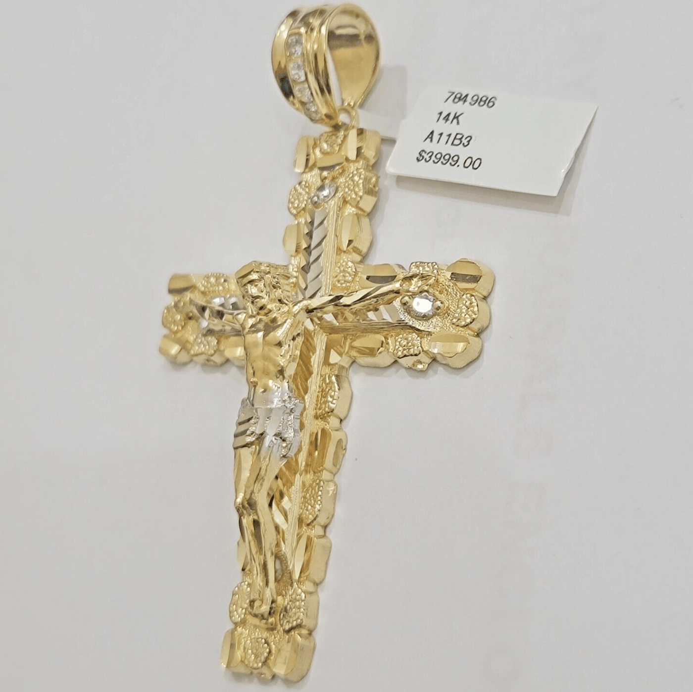 14 k Yellow Gold Real (Not plated , Not filled ) Jesus Crucifix Pendant For men's . The Length of the Pendant is 3.75 inch (approx. ) Long and 17-18 grams of approximate weight. The pendant can be worn with any chain. The pendant is considered durable. If you are not happy with the way it looks or feels, we do offer 30 - Days FREE Return shipping. Please note that this listing does not include a Necklace.