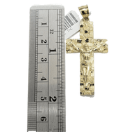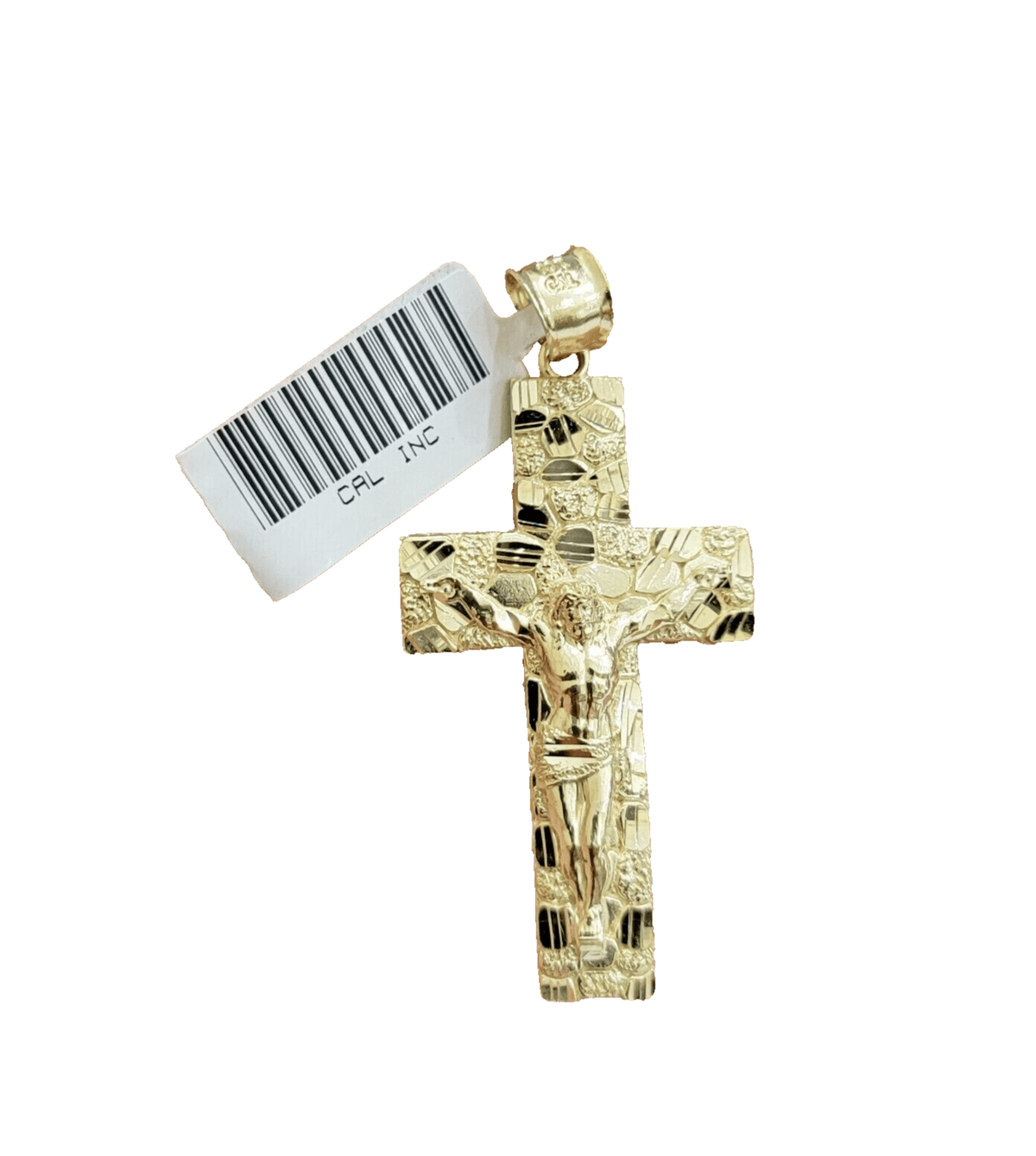 14k Yellow Gold Nugget Jesus Cross Charm Pendant 2'' inches Real 14kt SALE Chain