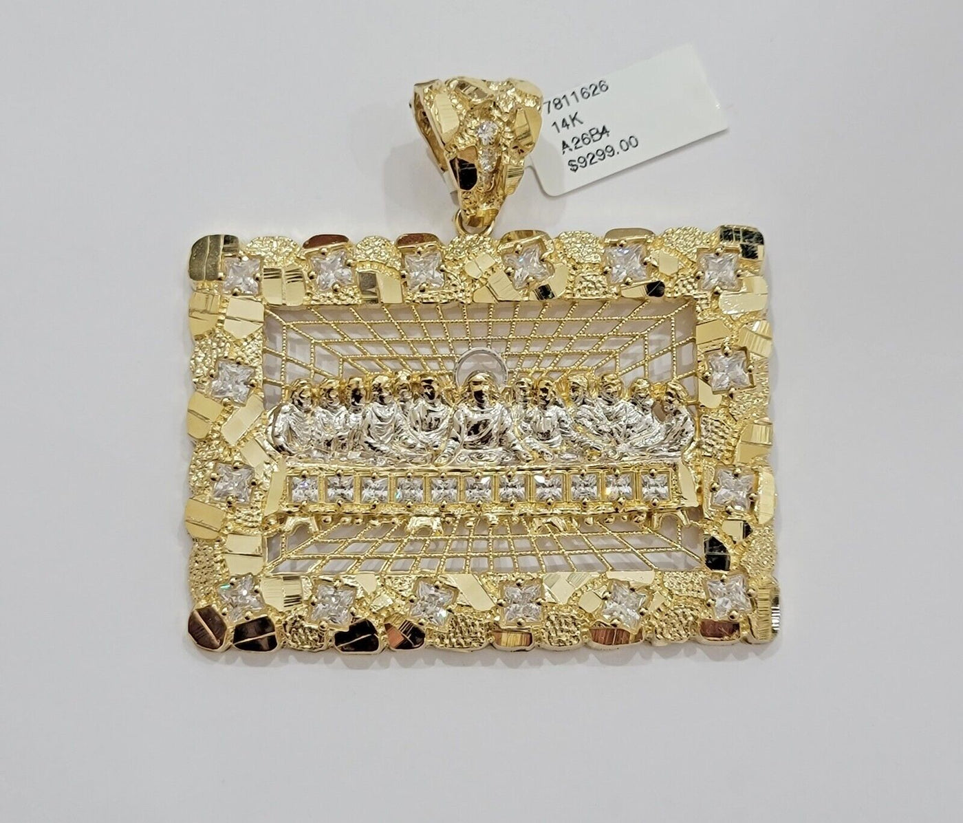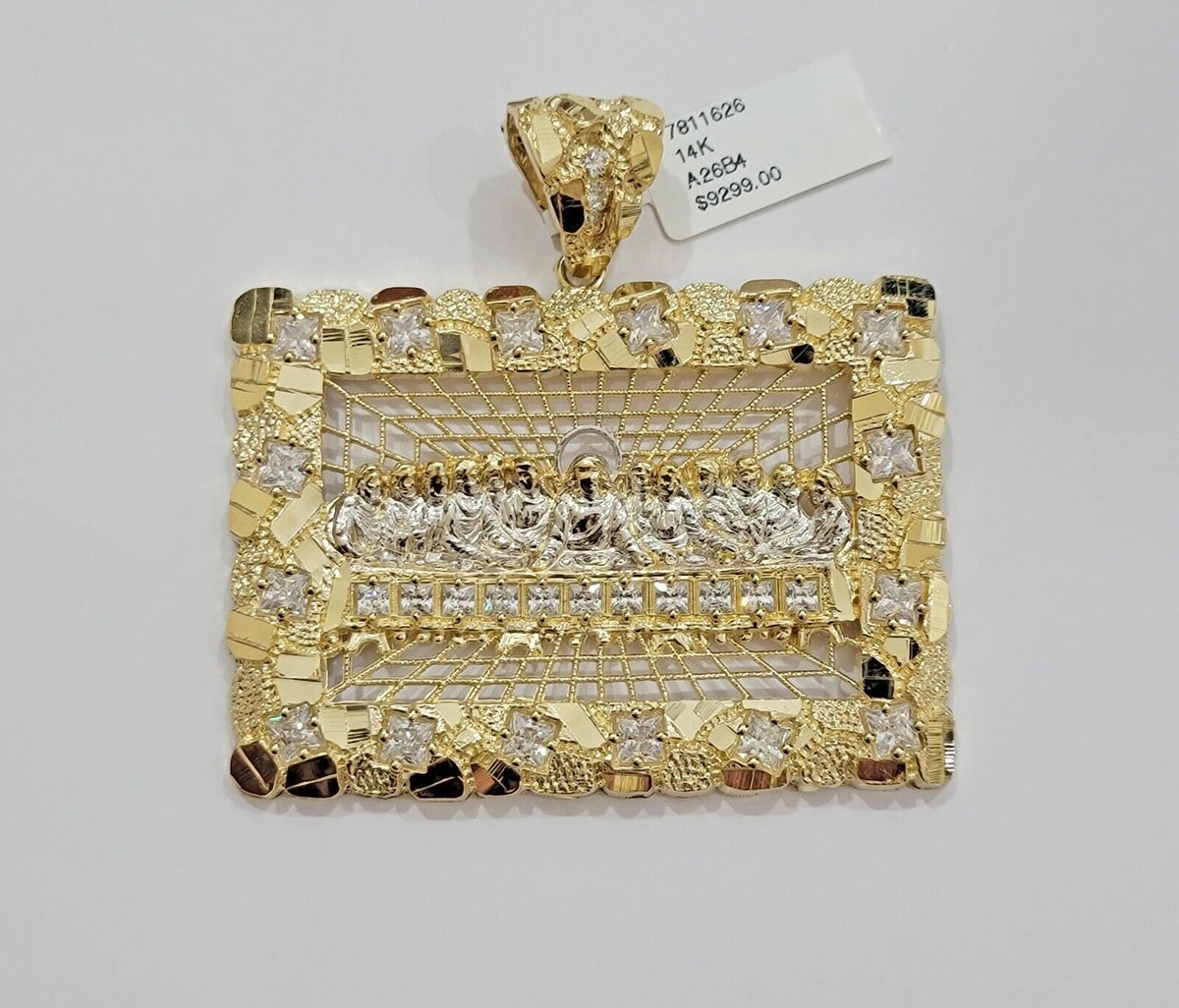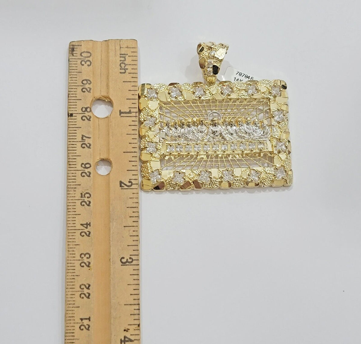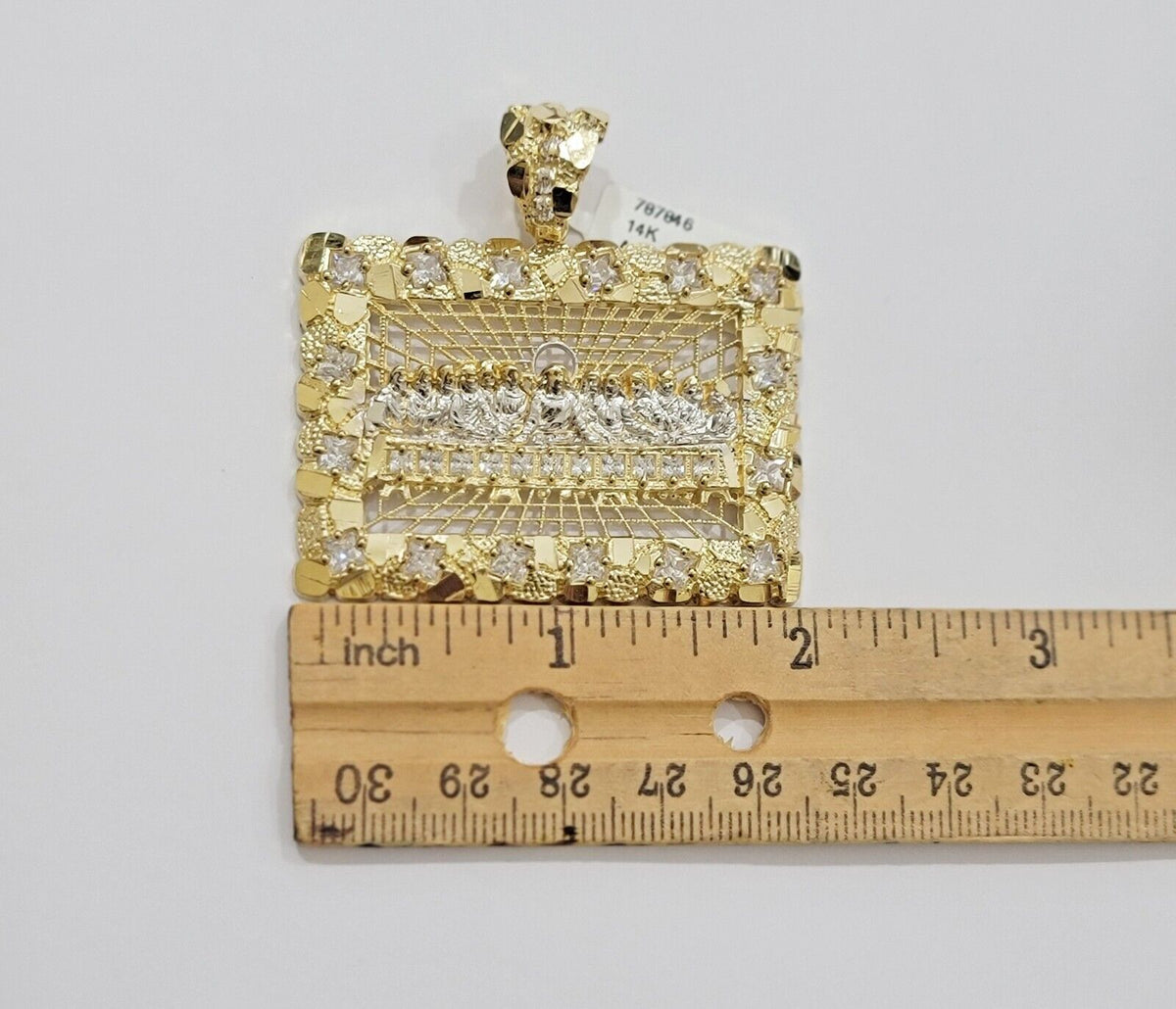 Genuine14 k Yellow Gold Real (Not plated , Not filled ) Last supper Nugget style pendant Pendant For men's . The Length of the Pendant is 2.1 inch (approx. including the Bail) Long and 17-18 grams of approximate weight. The pendant can be worn with any chain. It will fit up to 7mm necklace with lobster clasp. The pendant is considered durable. If you are not happy with the way it looks or feels, we do offer 30 - Days FREE Return shipping..