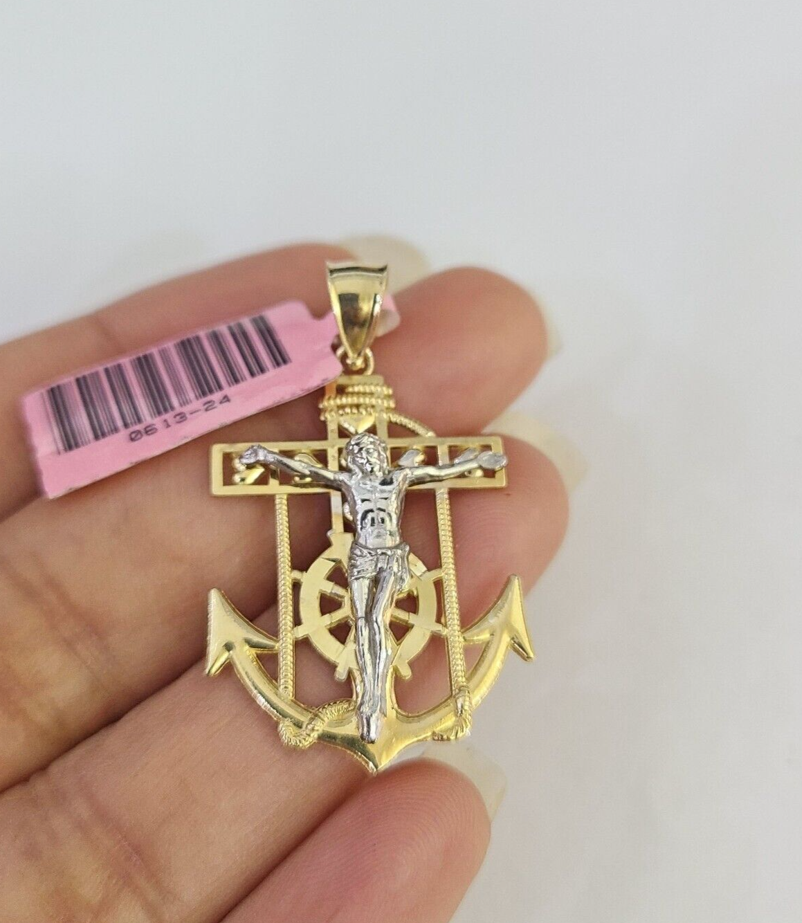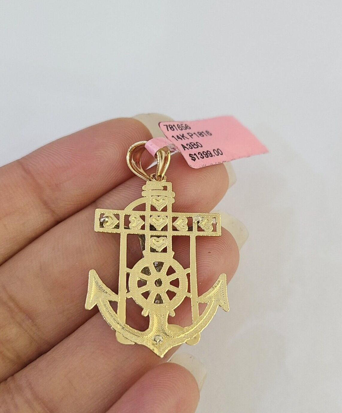 Real 14k Jesus Anchor Pendant Yellow Gold Charm Religious Genuine 14Kt
