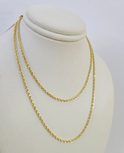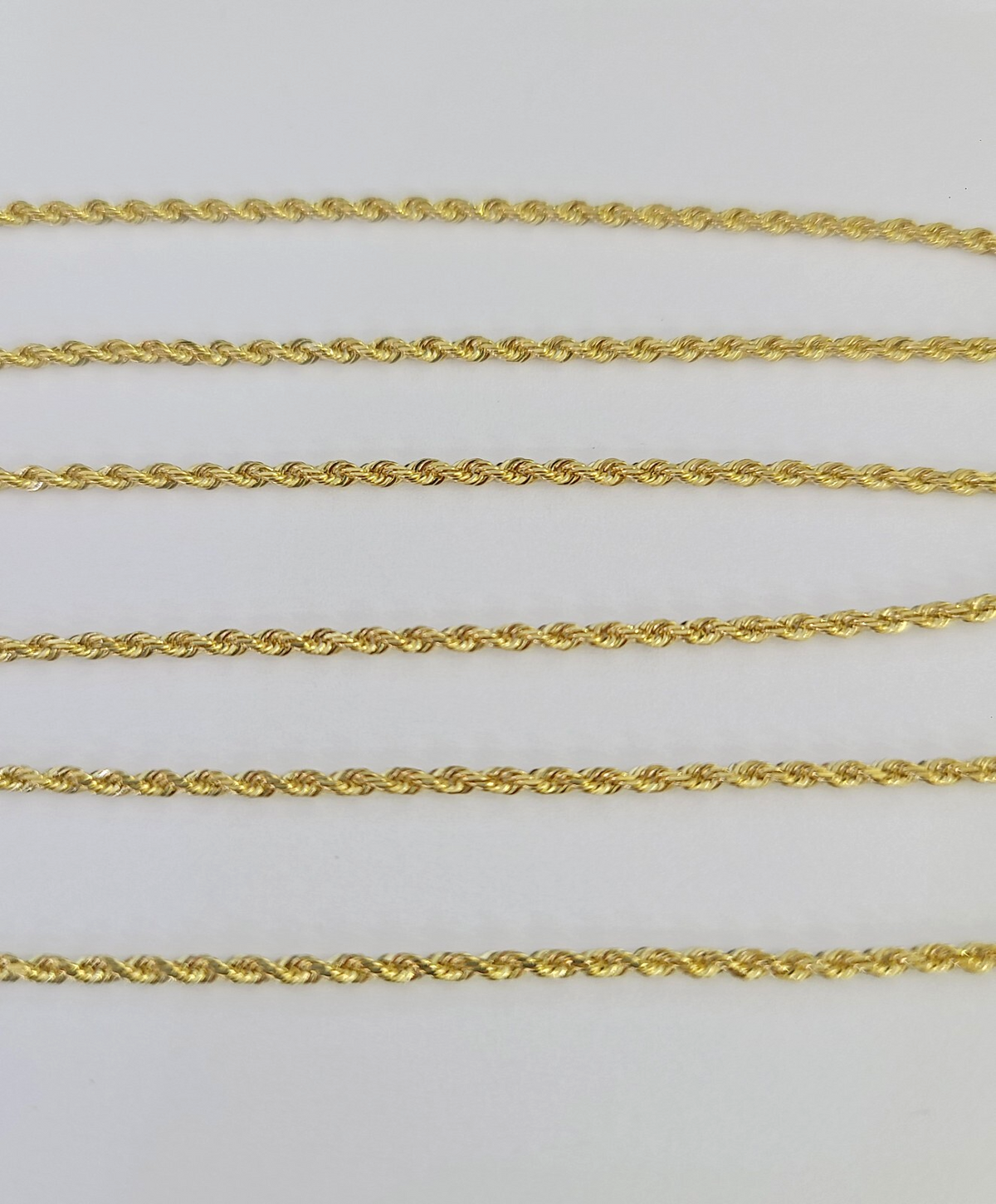 Real 18k Yellow Gold Rope Necklace Ladies chain. The Width of the necklace is 1mm and Length 22 Inches. The Clasp is lobster. The chain can be worn with the pendants. If you are not happy with the way it looks or feels, we do offer 30 - Days FREE Return shipping. Contact us for more information.