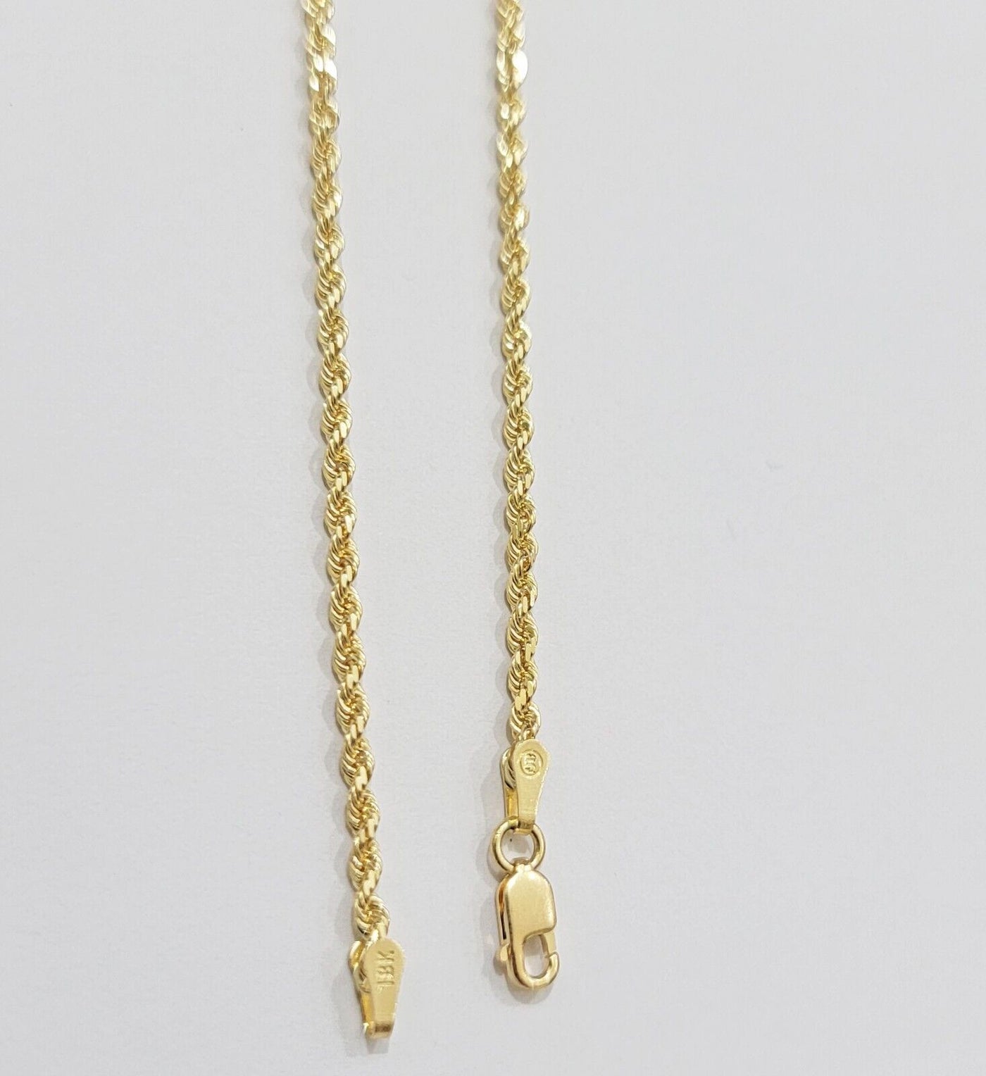 Real 18k Yellow Gold Rope Chain Necklace 24 Inch 2mm Solid 18 KT Men Women, SALE