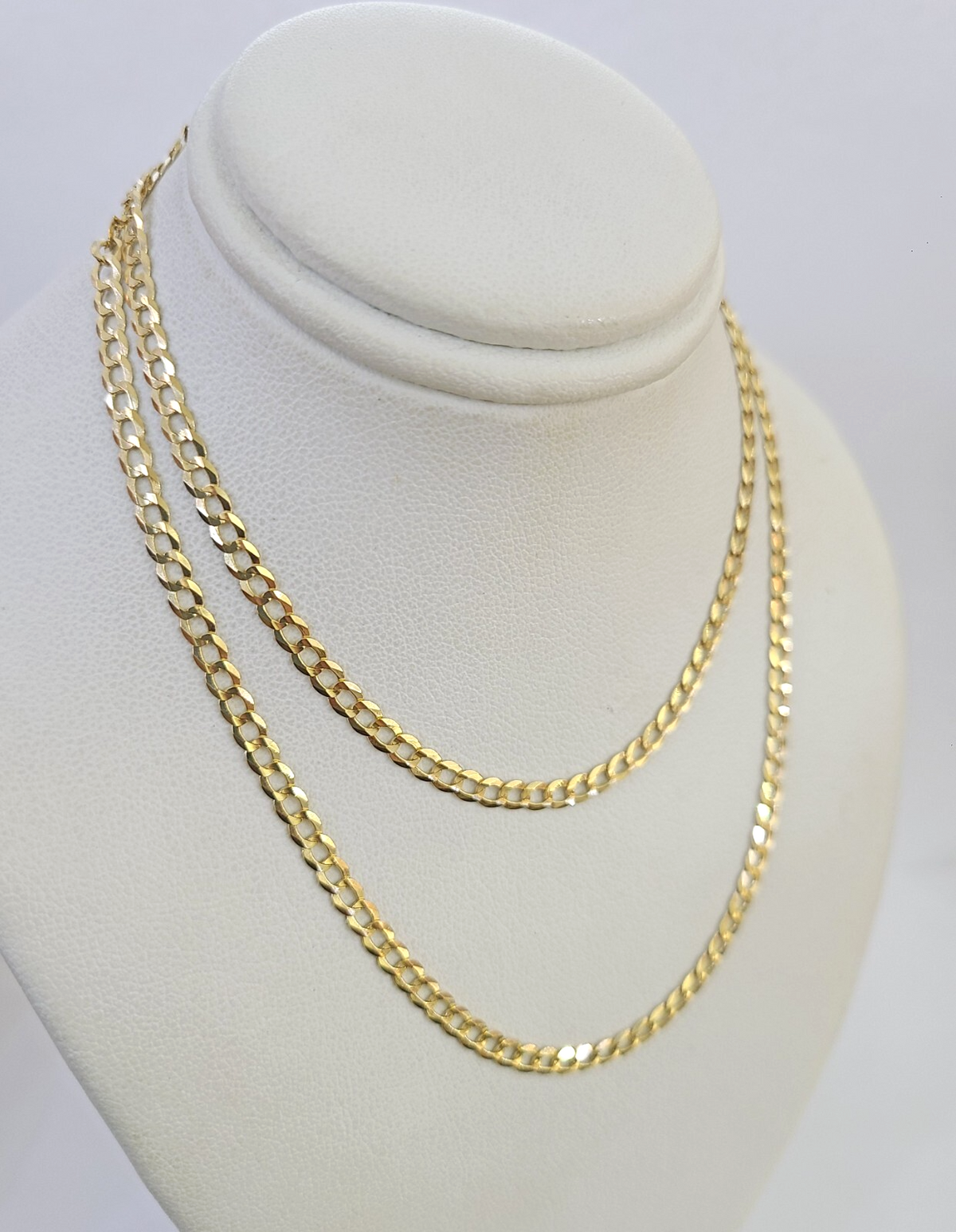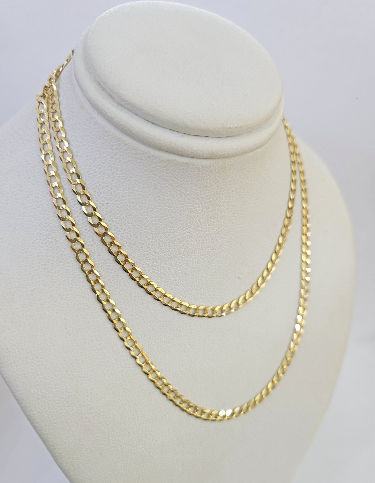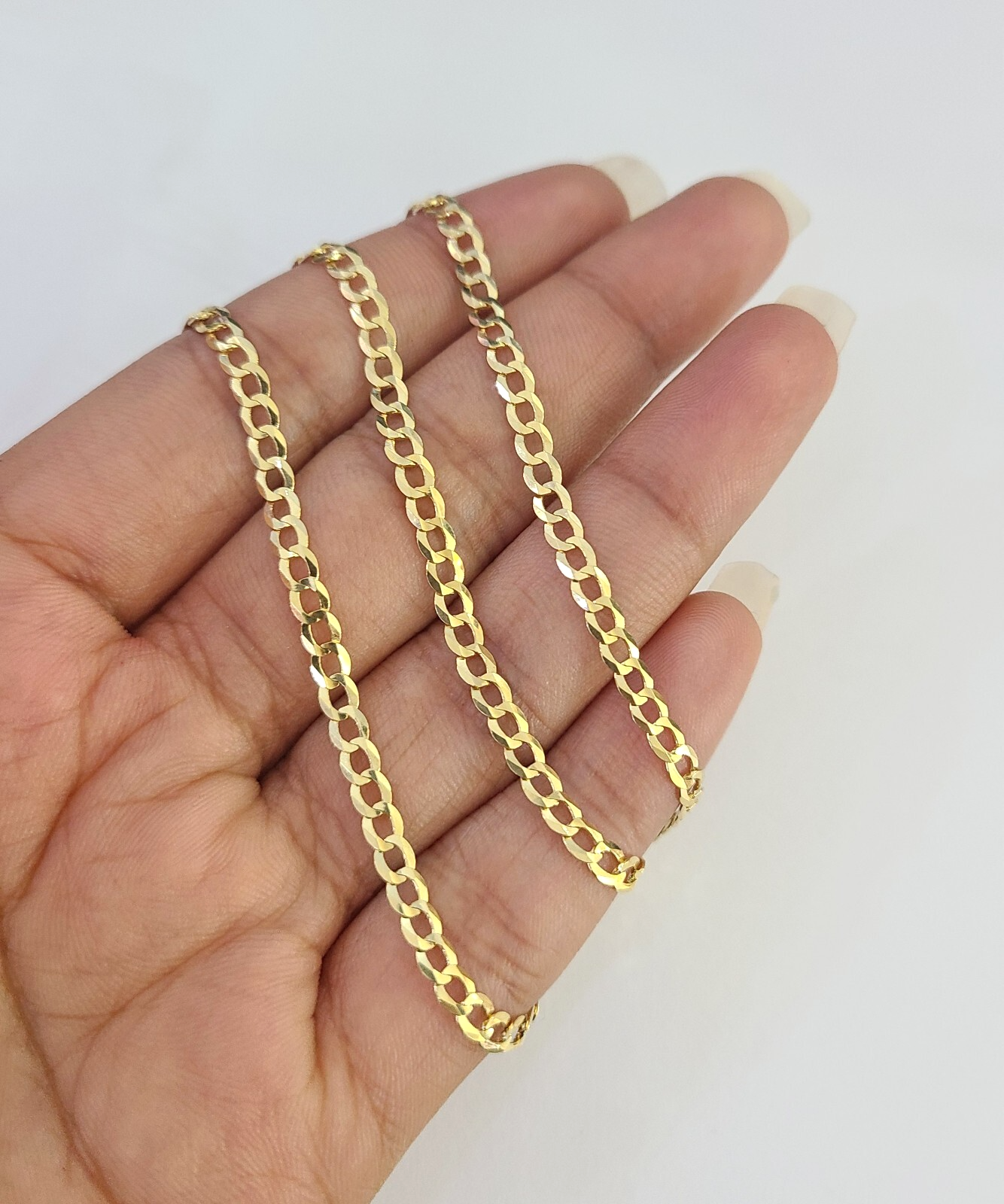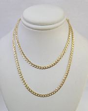 Real 18k Yellow Gold Miami Cuban Necklace chain. The Width of the necklace is 3mm and 22 Inch. The Clasp is Lobster. The chain can be worn with the pendants. If you are not happy with the way it looks or feels, we do offer 30 - Days FREE Return shipping. Contact us for more information.