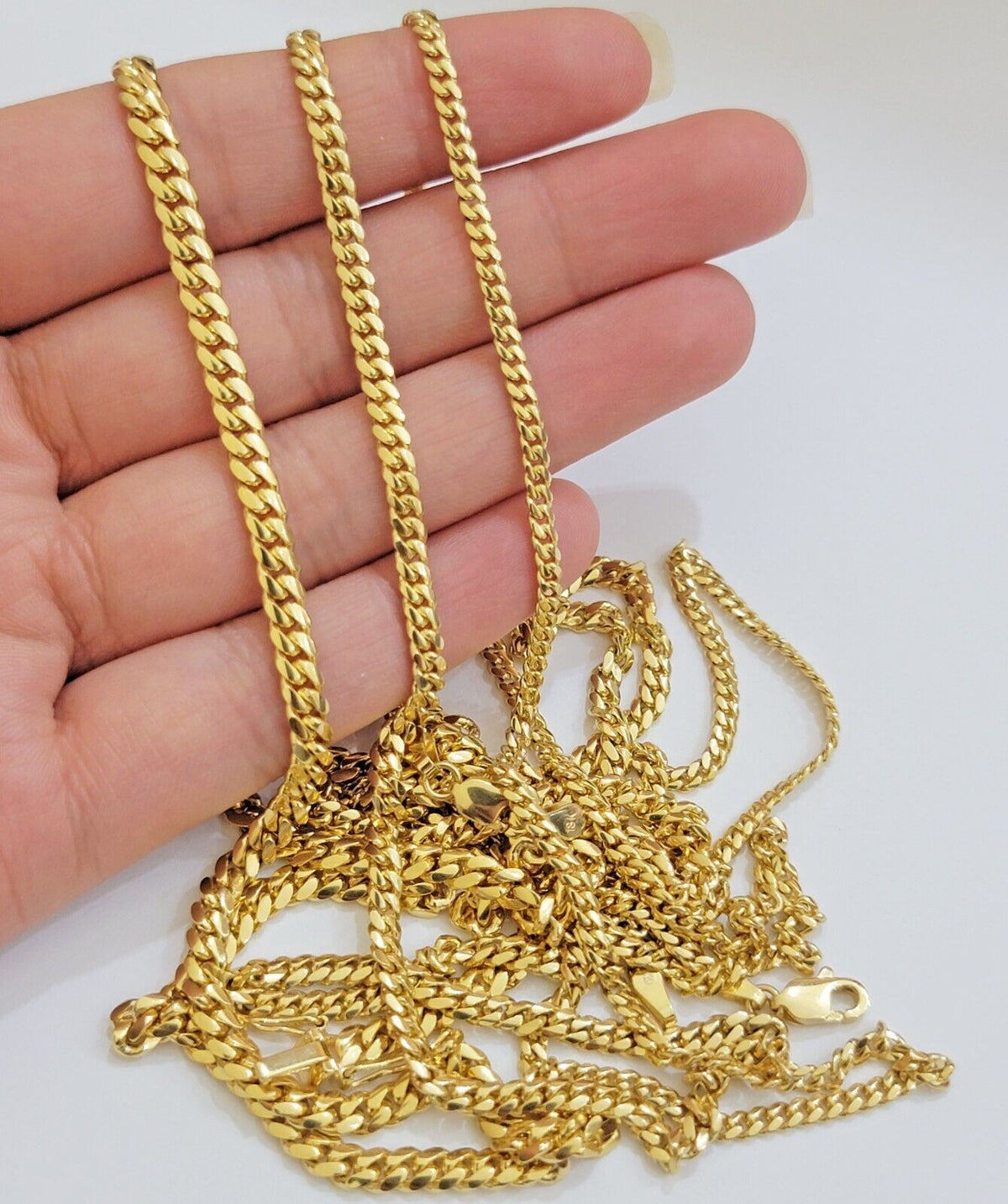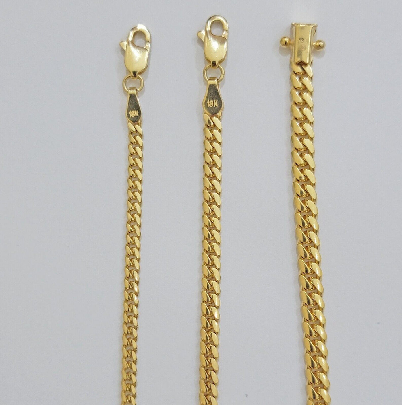 Solid 18k Gold Chain Necklace Miami Cuban Link 2.5mm-4mm 18"-26 Inch Real 18kt