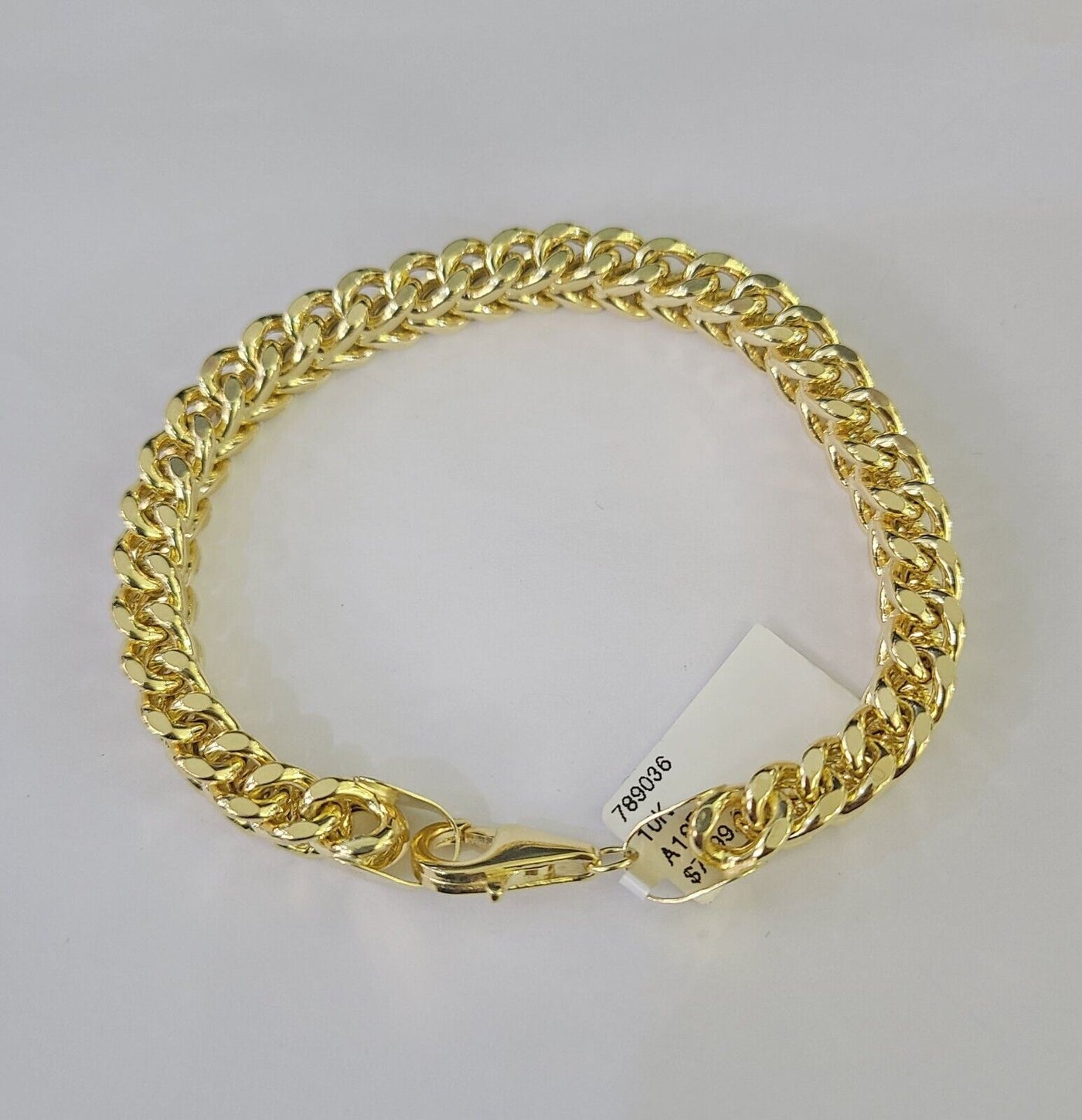 Is Presenting You with This Absolutely Stunning Real 10k Yellow Gold Franco Bracelet 8mm, 8 Inches, Lobster Lock. These bracelets are very strong and have a lobster clasp. These Beautiful bracelets will not tarnish, discolor, or fade because they are Pure 10K Gold. We also have them in various another length. Please feel free to contact us if you have any queries regarding the item.
