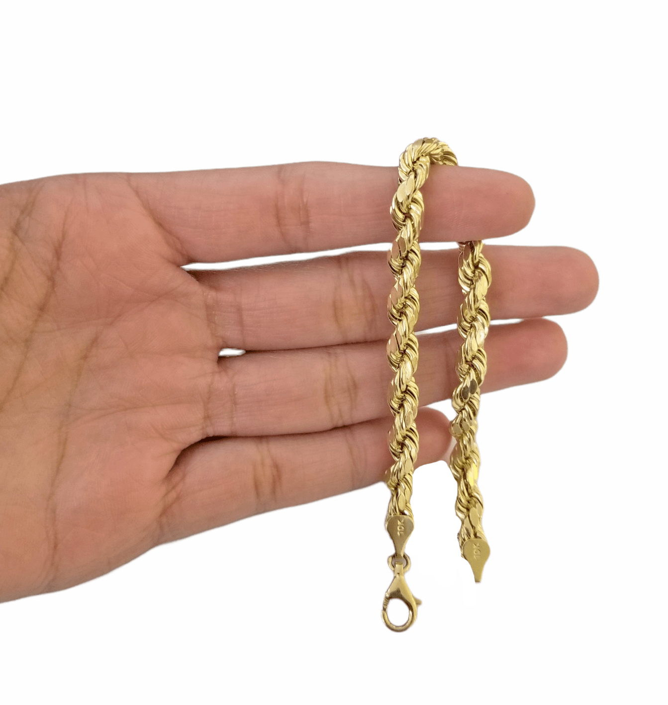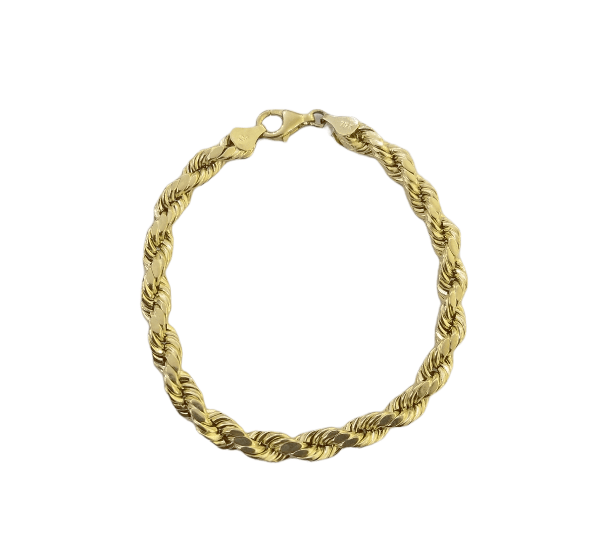 Is Presenting You with This Absolutely Stunning Real 10k Yellow Gold Rope Chain Bracelet 6mm, 8 Inch , Lobster Lock. These bracelets are very strong and have a Lobster clasp.��These Beautiful bracelets will not tarnish, discolor, or fade because they are Pure 10K Gold.��We also have them in various another length. Please feel free to contact us if you have any queries regarding the item. A7B2