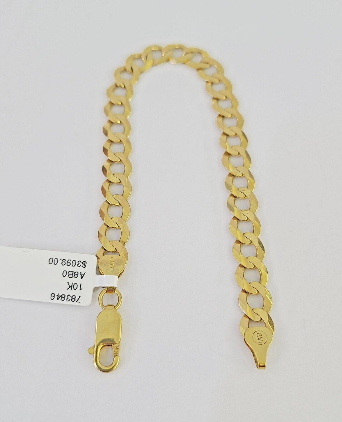 Is Presenting You with This Absolutely Stunning Real 10k Solid Yellow Gold Cuban Curb Link Bracelet 7mm,7 Inches, Lobster Lock. The links are 10K GOLD and are very strong and have a box lock with the two safety clasp on sides. These Beautiful bracelets will not tarnish, discolor, or fade because they are Pure 10K Gold. We also have them in various another length. Please feel free to contact us if you have any queries regarding the item.