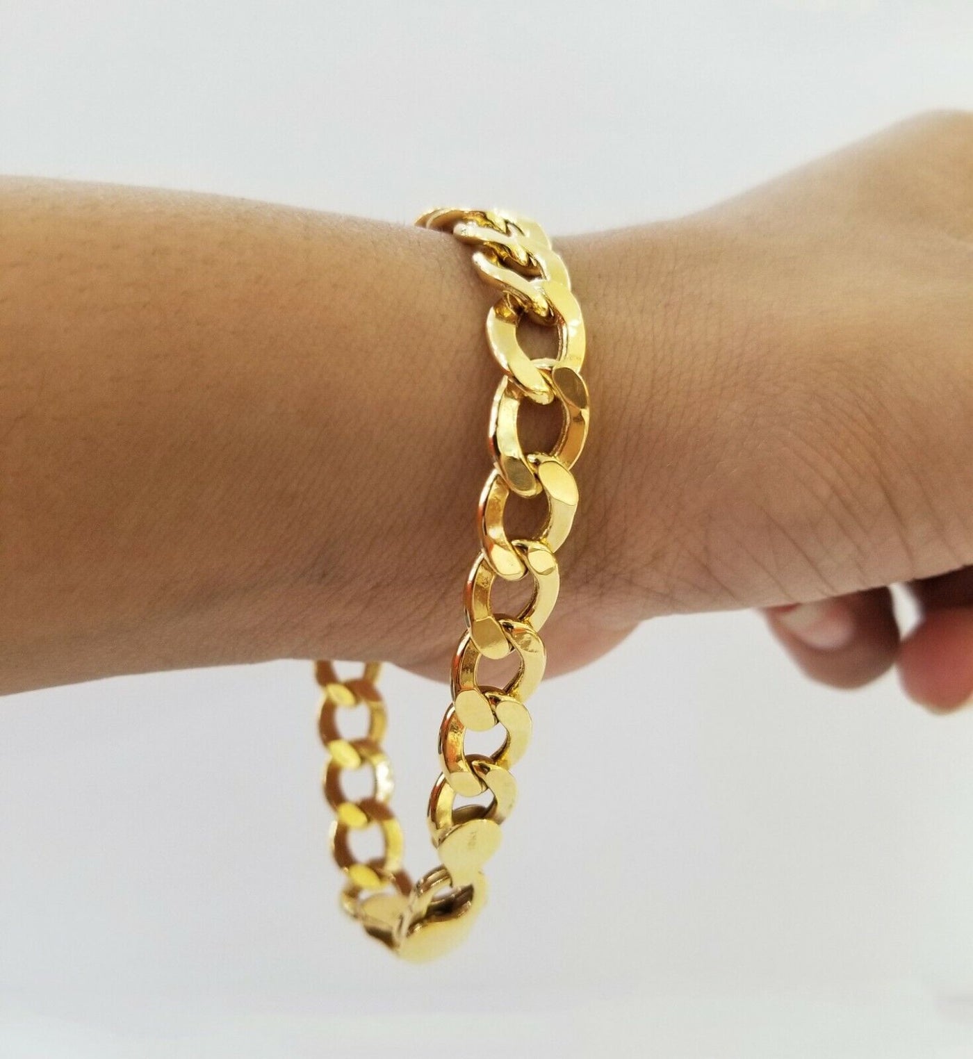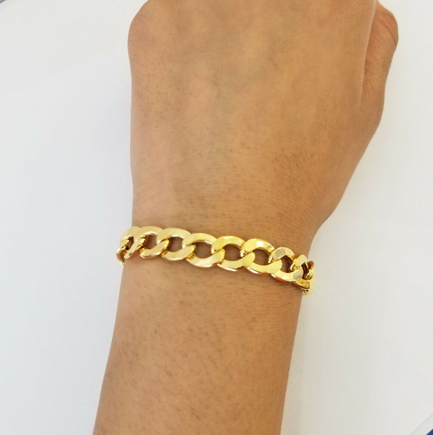 10k Yellow Gold Cuban Link Bracelet 10mm Link 8 inch Real gold hand chain 10kt