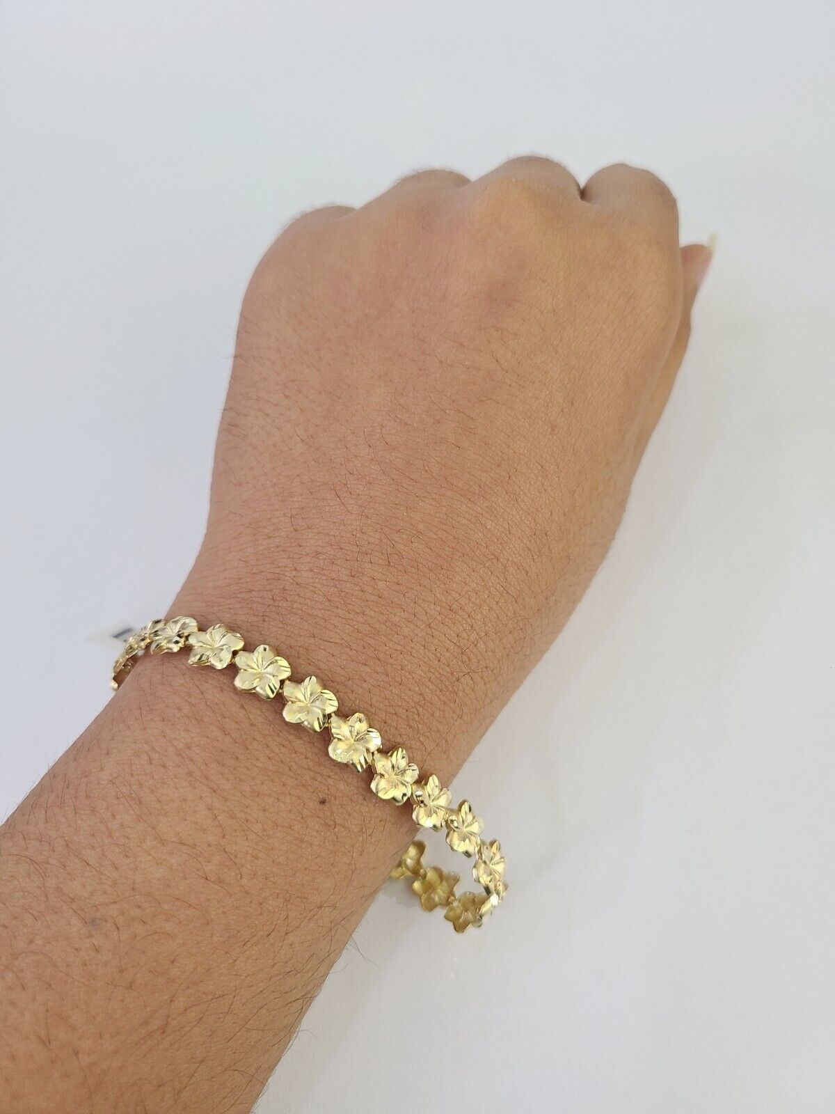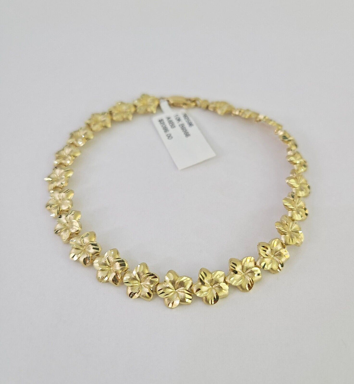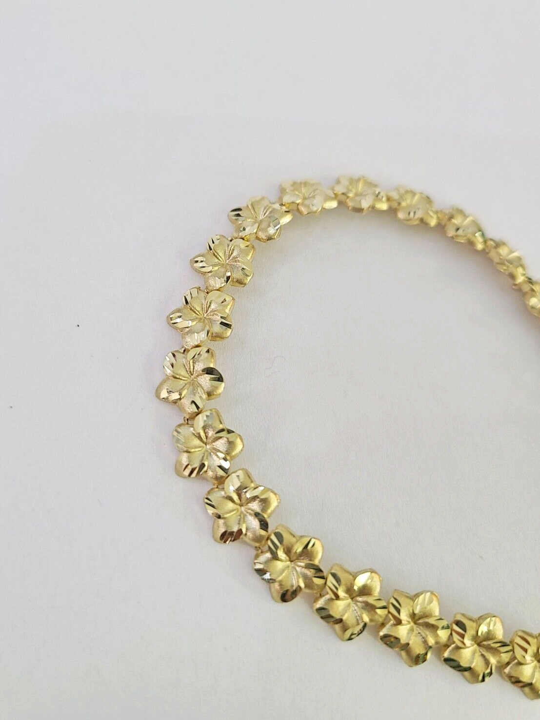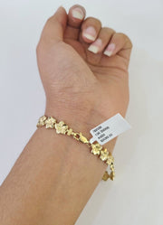 10k Yellow Gold Flower Bracelet 8" 8mm Diamond Cut