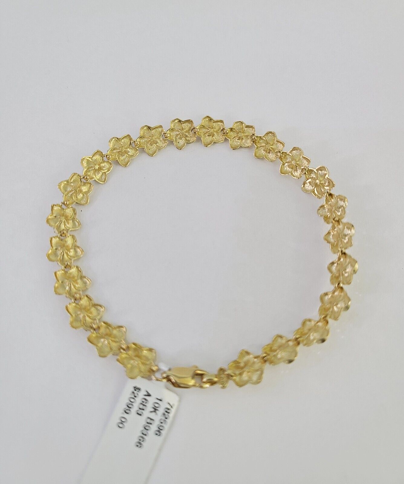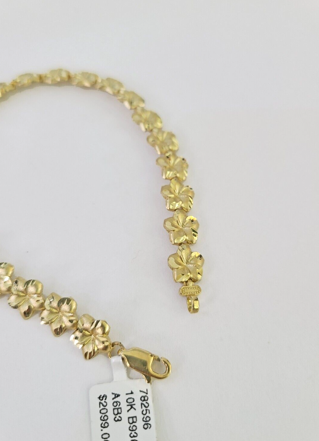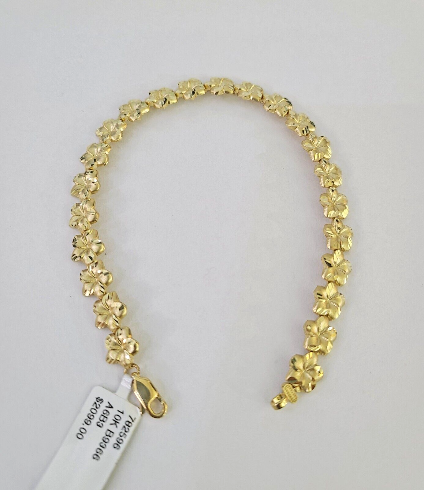 10k Yellow Gold Flower Bracelet 8" 8mm Diamond Cut