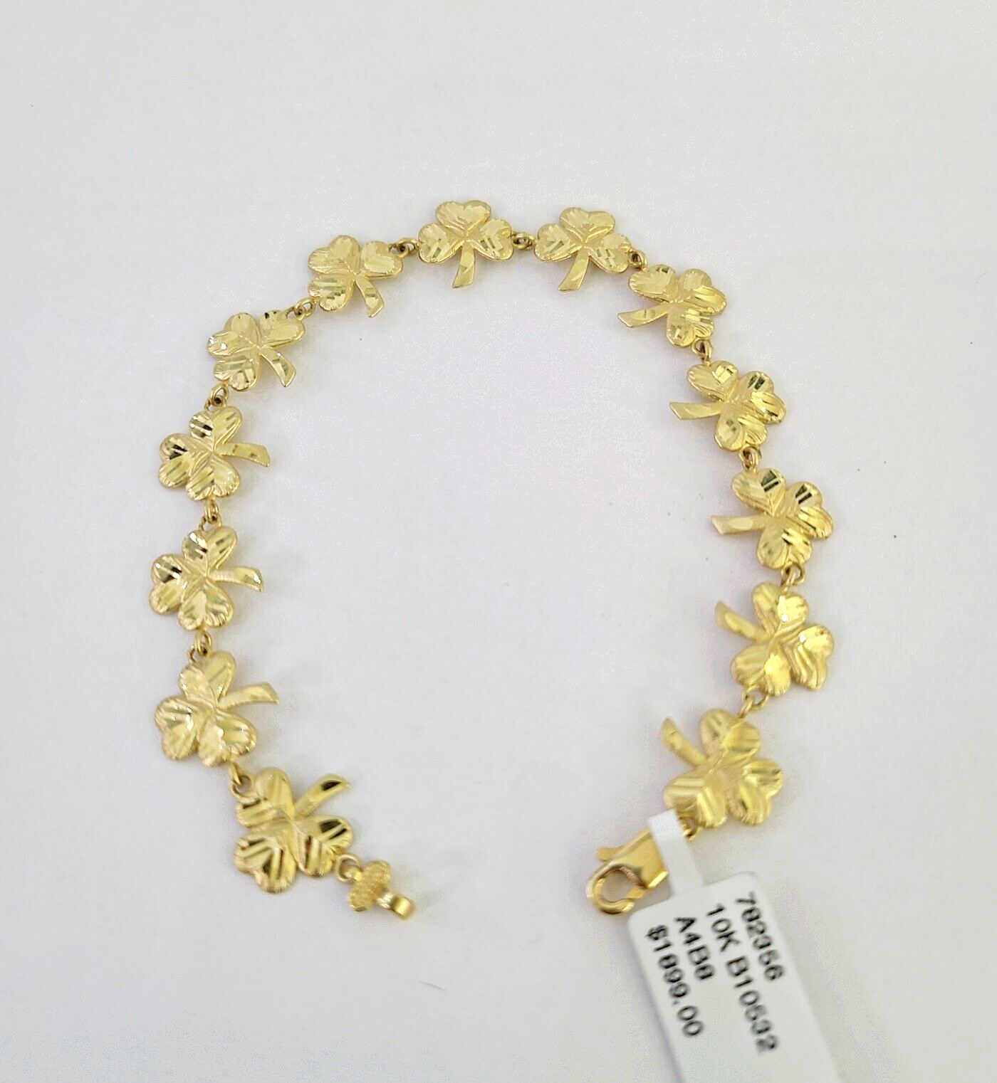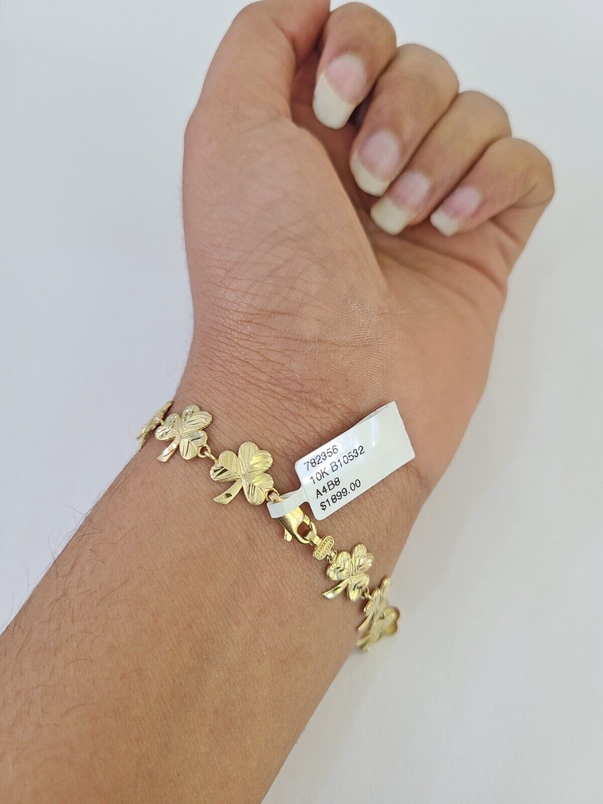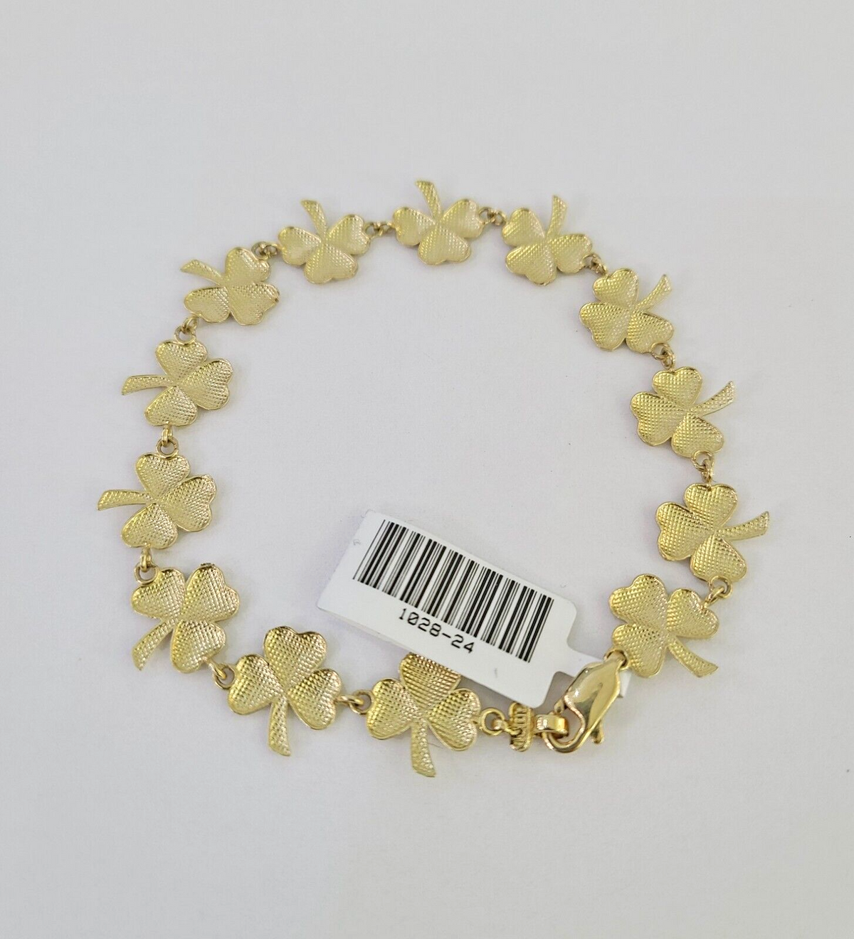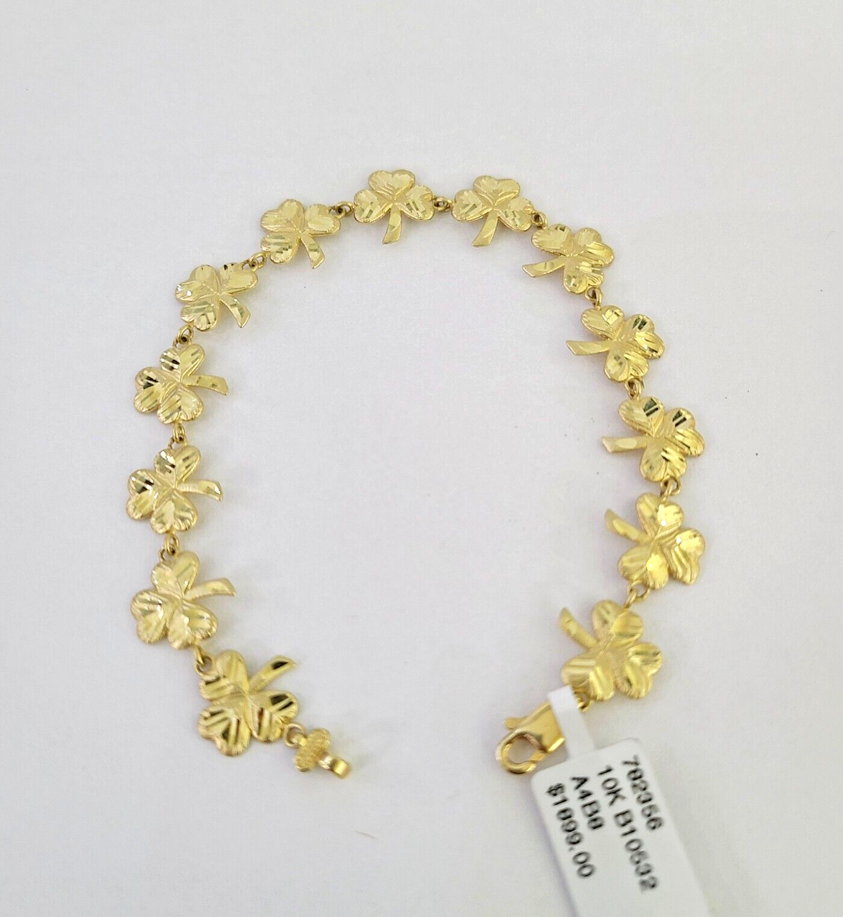 10K Yellow Gold ( Real , Not plated , Not filled ) Leaf Bracelet With Diamond Cuts. The length is 7 Inch Long and Width of the Bracelet is 9mm (approx.). The Clasp is Lobster clasp. If you are not happy with the way it looks or feels, we do offer 30 - Days FREE Return shipping.