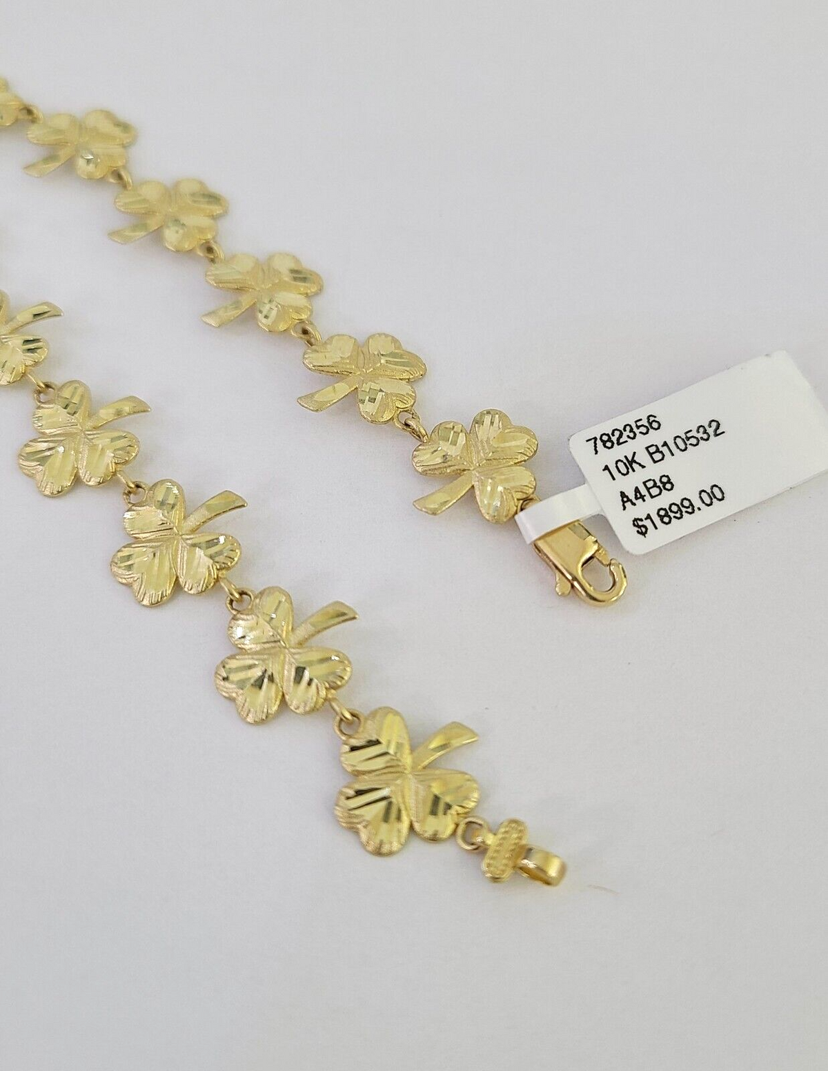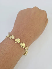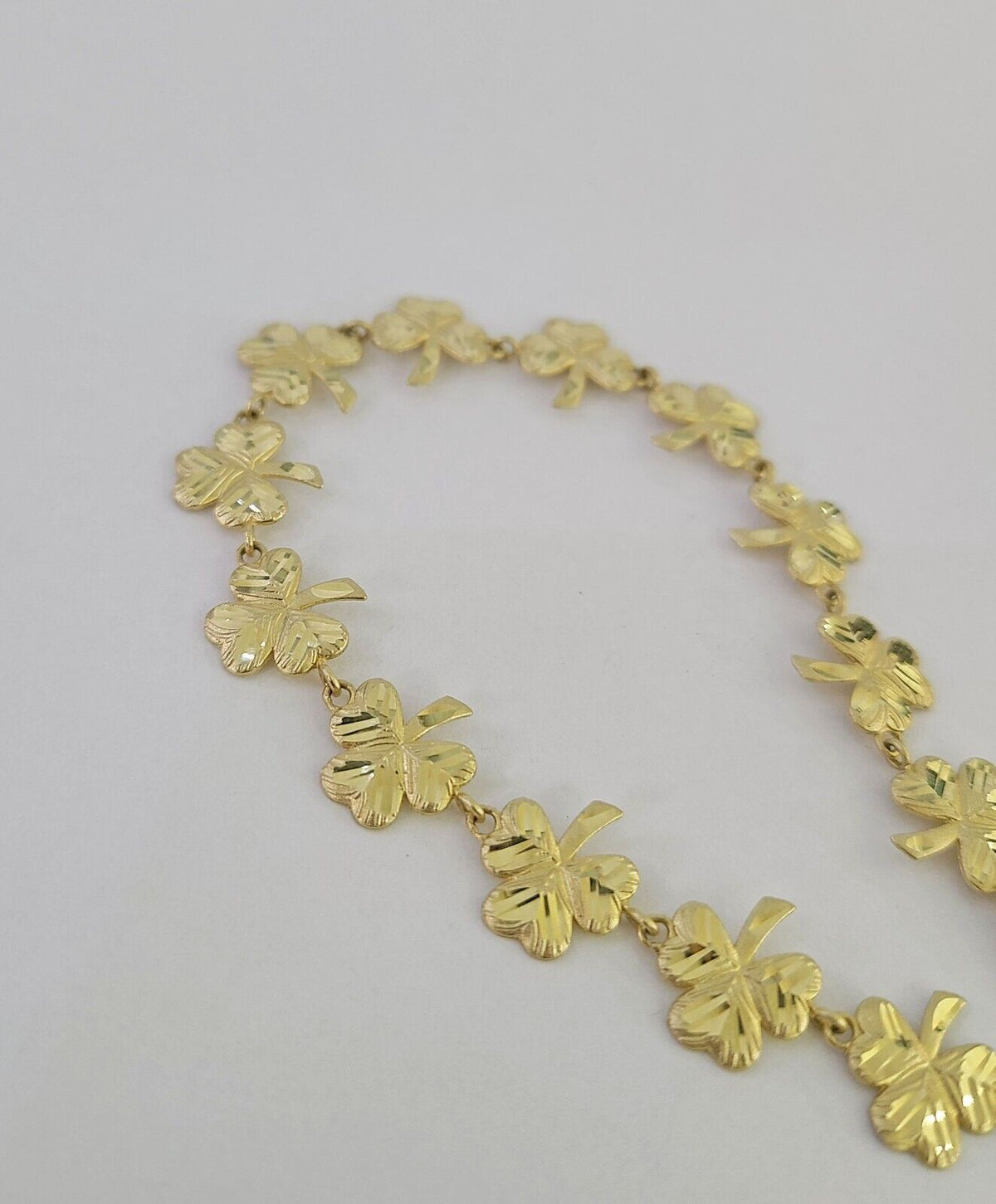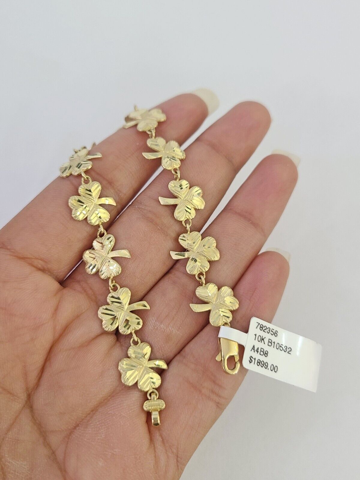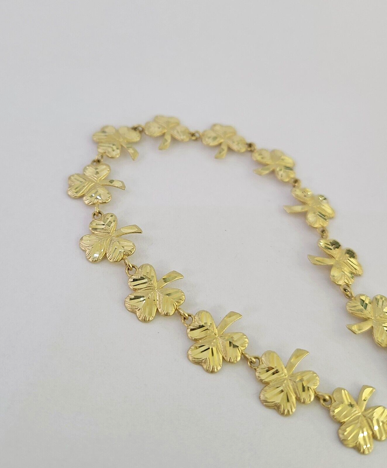10K Yellow Gold ( Real , Not plated , Not filled ) Leaf Bracelet With Diamond Cuts. The length is 7 Inch Long and Width of the Bracelet is 9mm (approx.). The Clasp is Lobster clasp. If you are not happy with the way it looks or feels, we do offer 30 - Days FREE Return shipping.