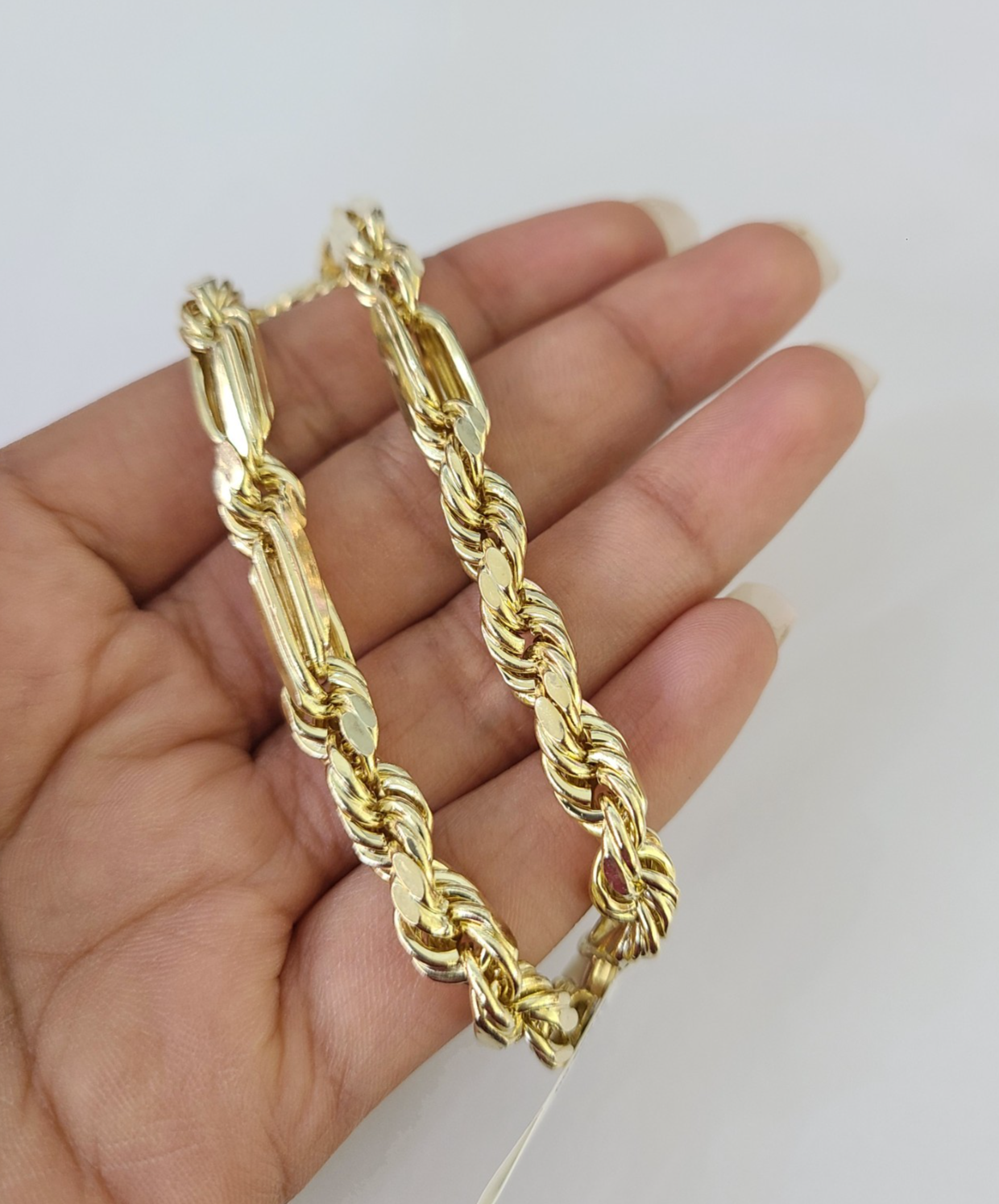 10k Yellow Gold Milano Rope Bracelet 9" 7mm Diamond Cut Real Yellow Gold ( Real , Not plated , Not filled ) Milano Rope Bracelet . The Width of the Bracelet is 7mm and 9 Inch Long (with lobster clasp). The bracelet is beautiful designed with Milano Rope style. Made with high-quality 10-karat gold .The bracelet is Pure 100 % 10k Gold. All the way Gold