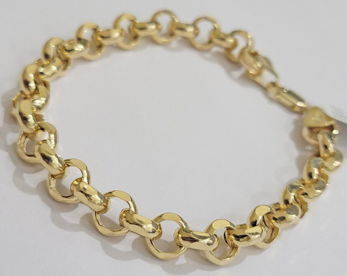 10 K Yellow Gold ( Real , Not plated , Not filled ) Rolo Link Bracelet. The Diameter of the Circle is 8 mm and Length of the bracelet is 8 Inch Long . The Clasp is Lobster Lock. The bracelet is beautiful designed with Light weight style, yet strong and steady. If you are not happy with the way it looks or feels, we do offer FREE Return shipping.