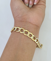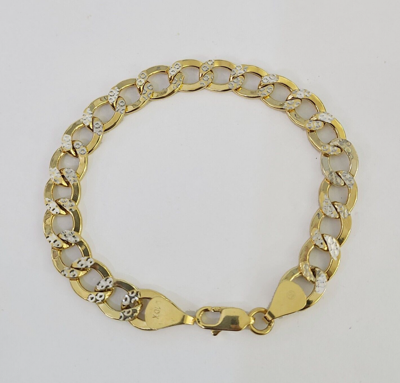 Real 10K Cuban Curb Link Bracelet Yellow Gold Diamond Cut 10mm 8" Inch