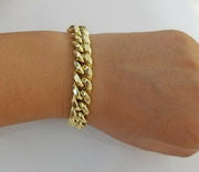 Real 10 K Gold Bracelet For ladies Miami Cuban Link 11 mm 9 Inches Box Lock Safety