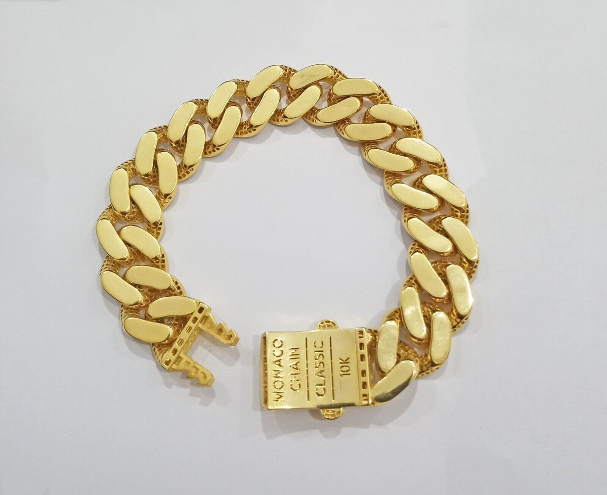 Real 10k Gold Monaco Bracelet 17mm Royal Cuban link 8" Two-tone Diamond Cut 10kt