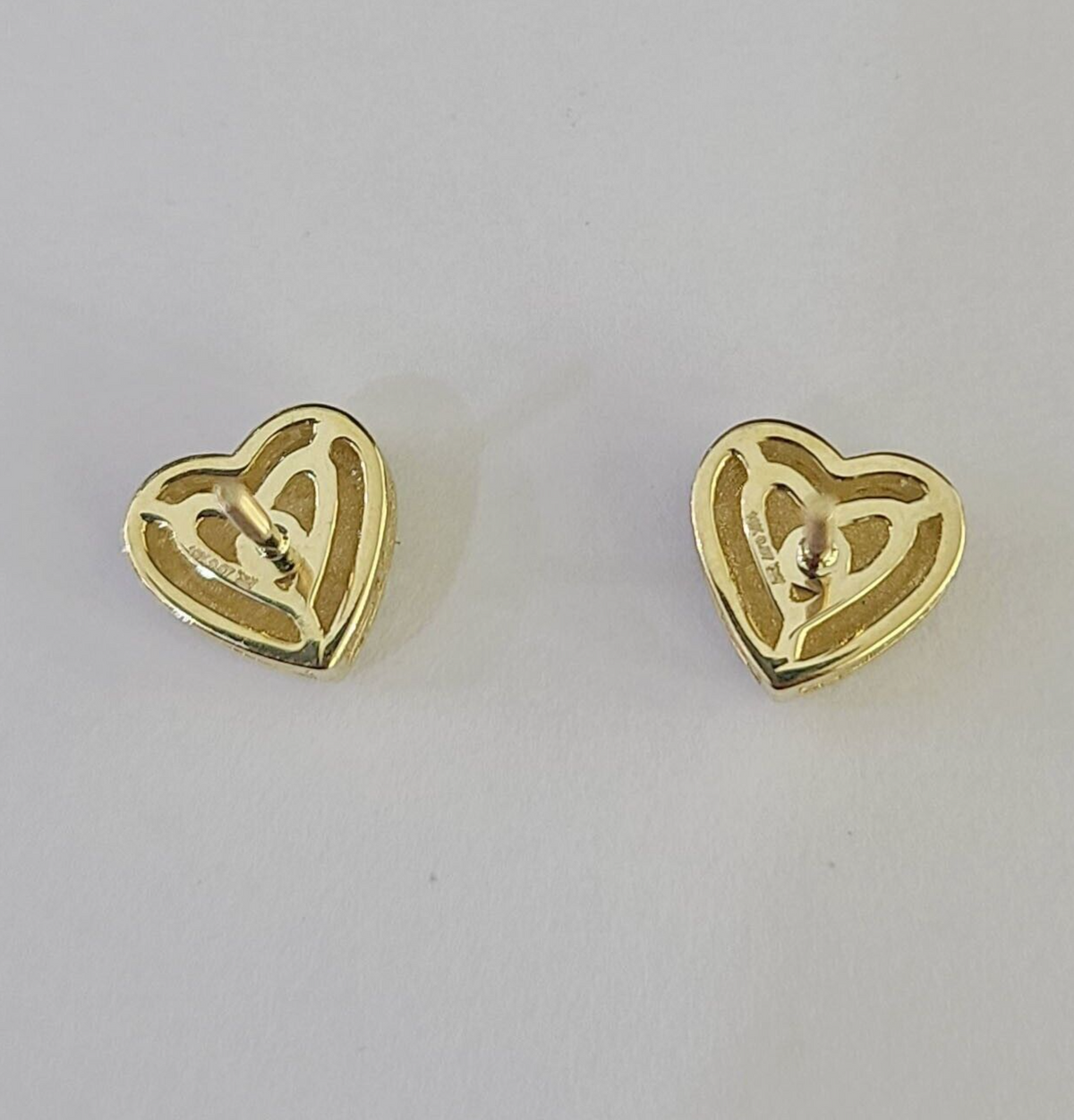 10k Heart Diamond Earrings Real Screw-Back Women Men Studs Yellow Gold