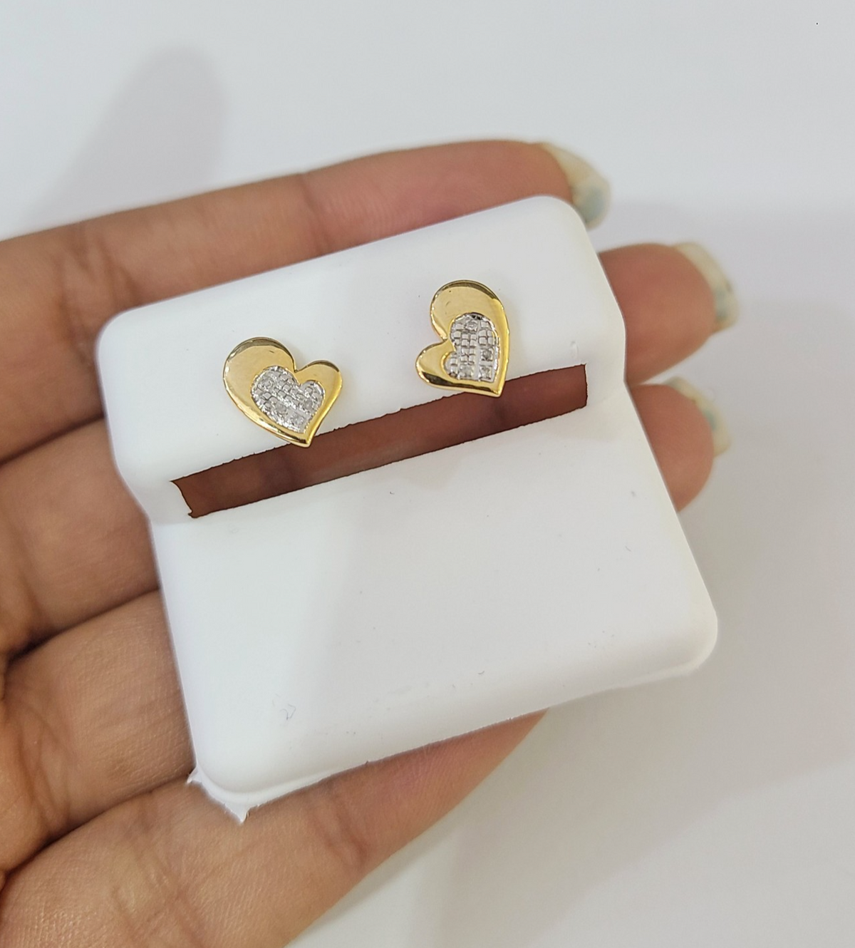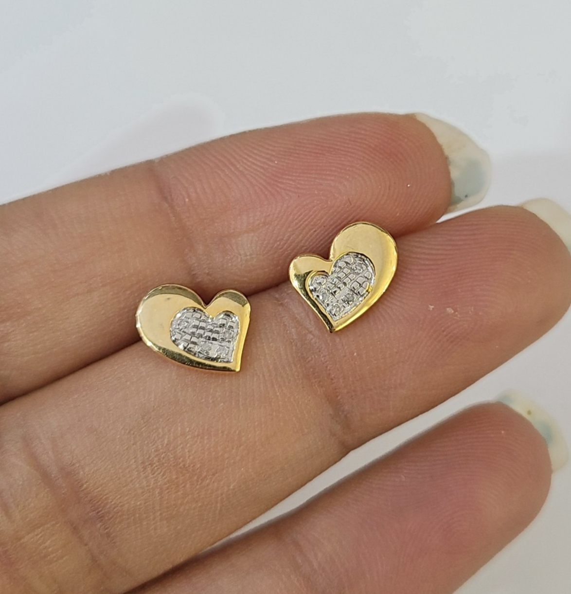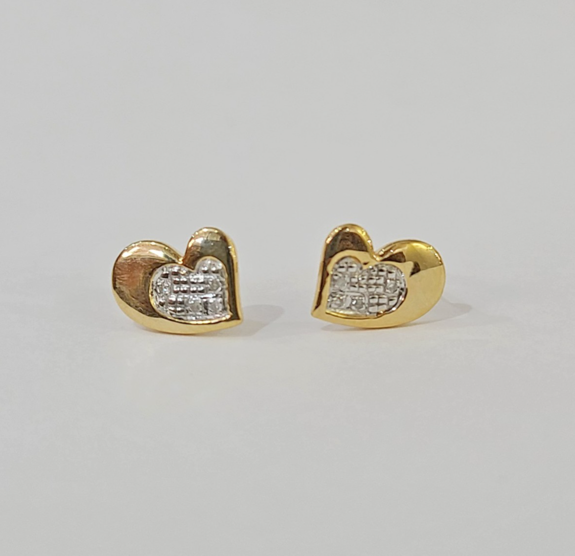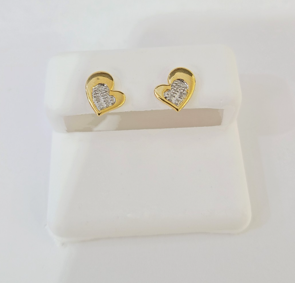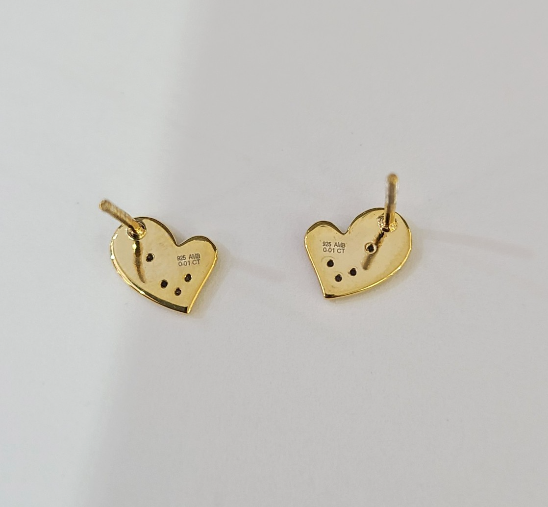 Real Silver 925 Diamond Heart Earring Gold Plated Screw back