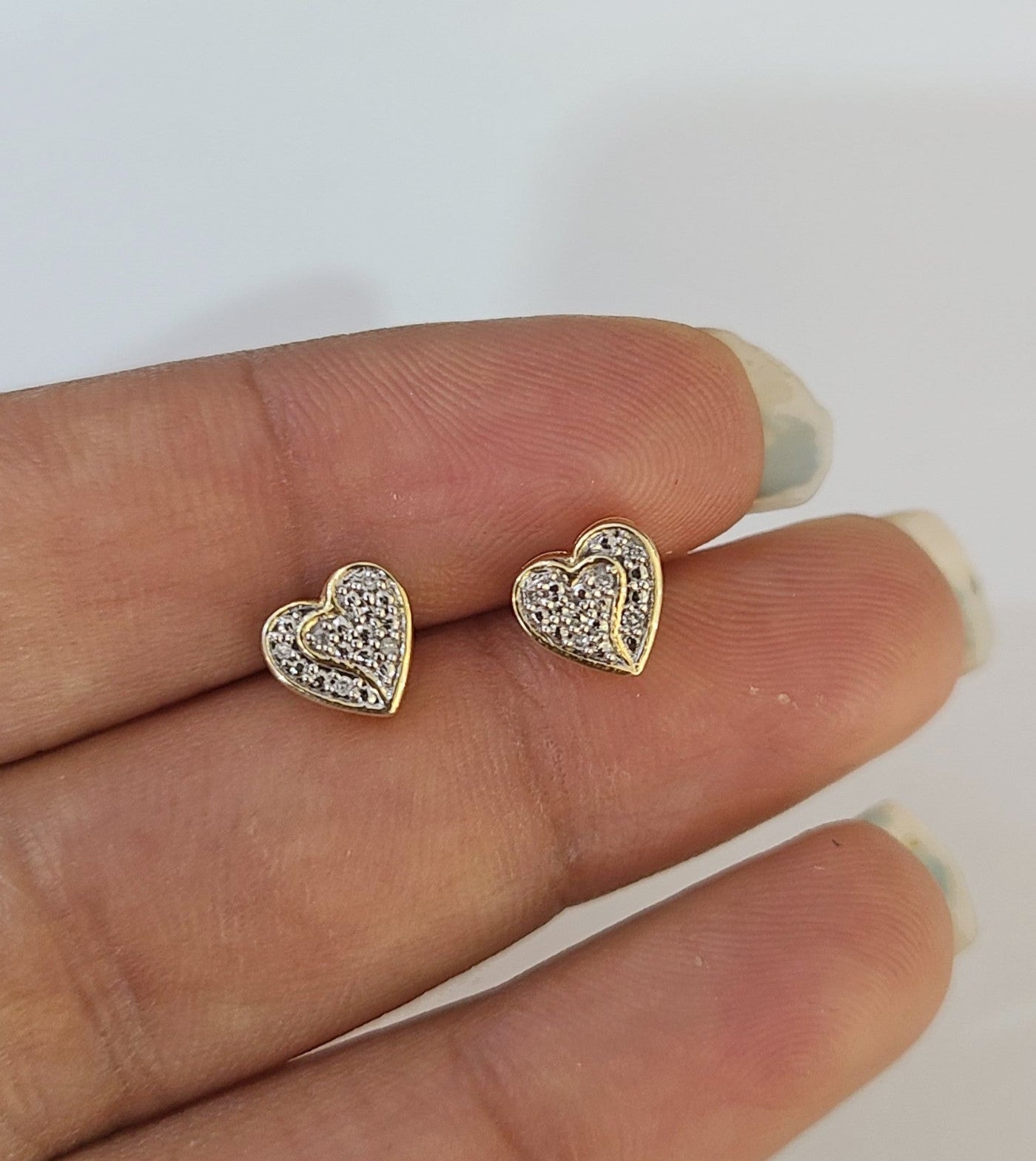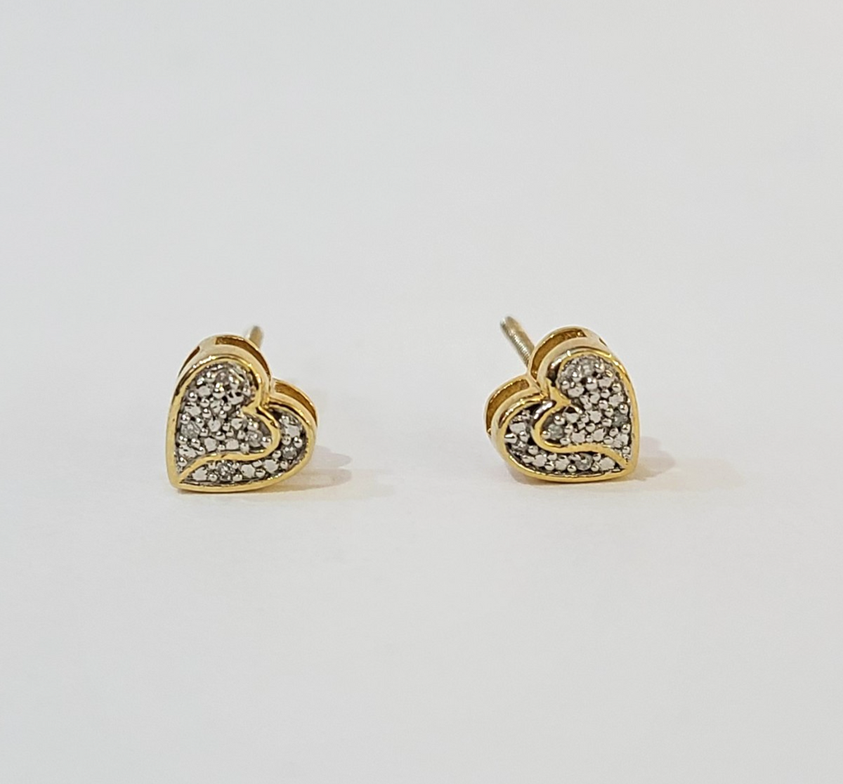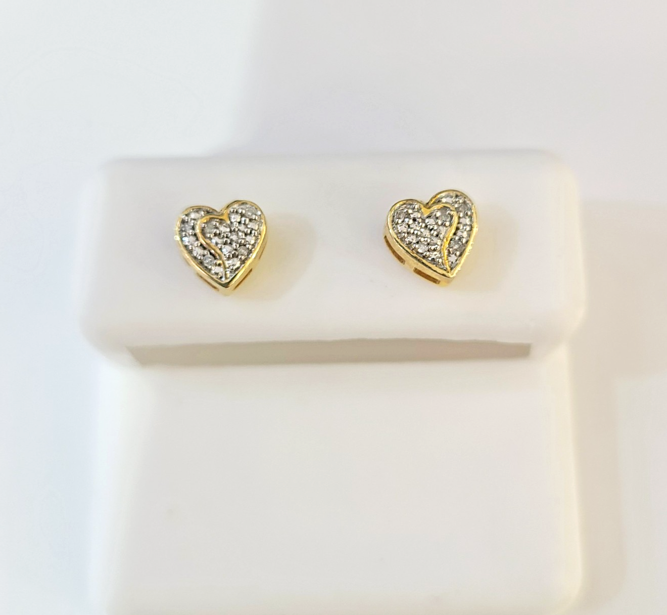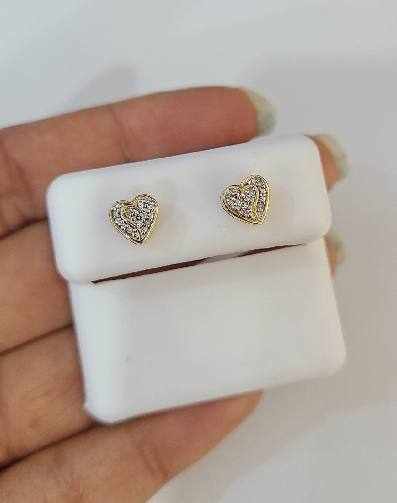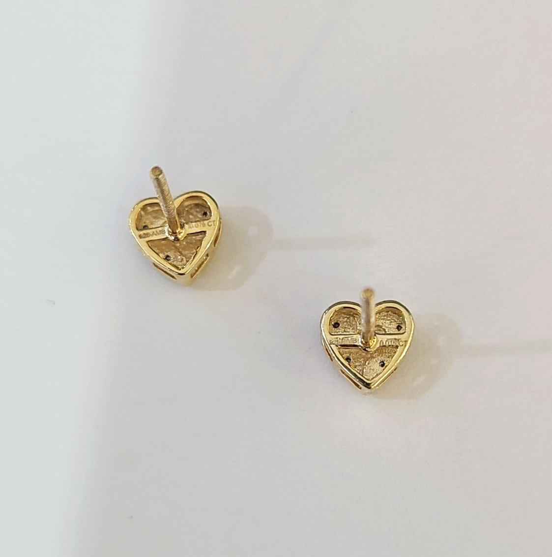 Real 10k Silver 925 Diamond Heart Earring Gold Plated Screw back SALE !!!