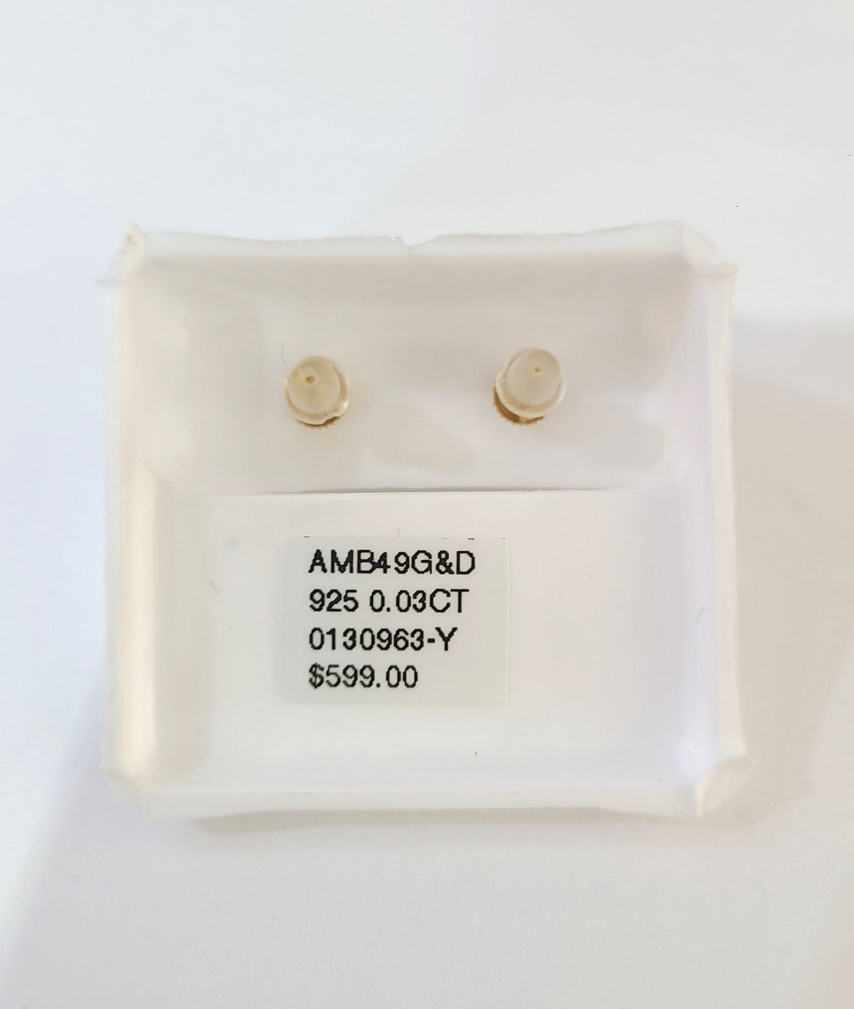 Genuine 10k Silver 925 and Real Natural 0.03 CT Diamond Earring Gold Plated. The Earring is considered durable. The shape of the diamond is Round, Traditional and Classic & Timeless.