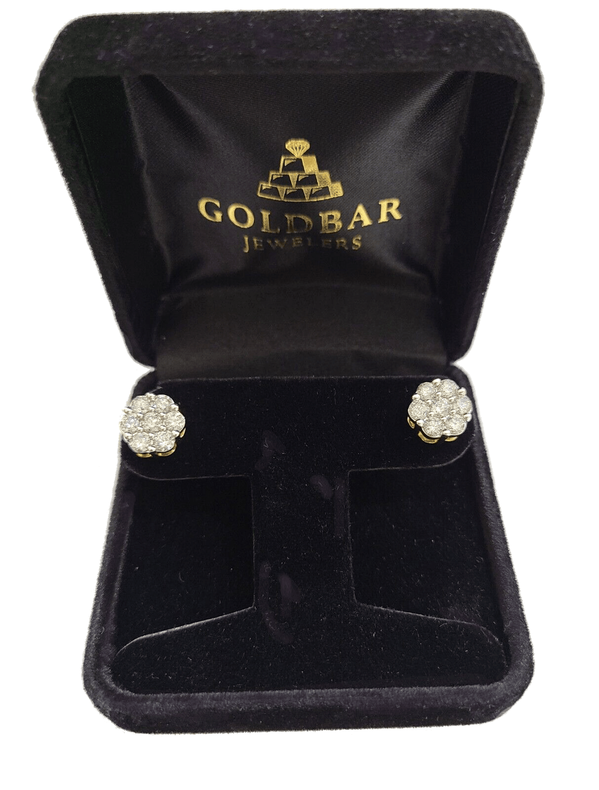 Real 10k Yellow Gold Earring Stud White Diamond 2.11CT Round Design Unisex
