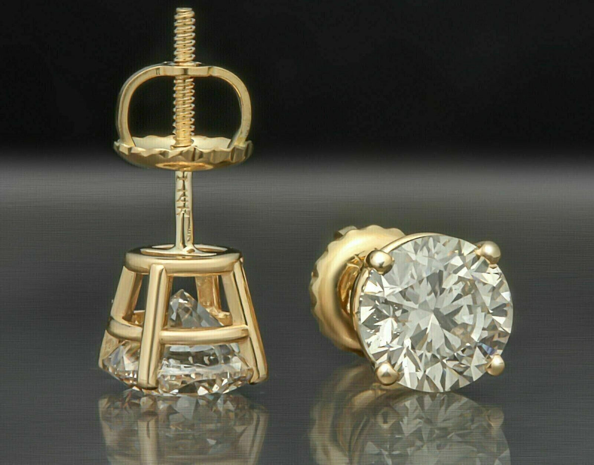 Real 1CT Round Brilliant Cut Diamond Stud Earrings In 14K Gold Lab Created