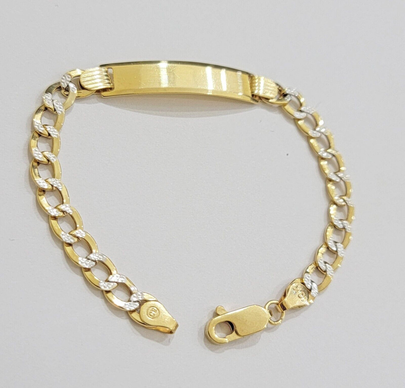 Kids REAL 10k Gold Bracelet ID Cuban curb Link Two-tone style 5mm 6 Inch Baby Bracelet