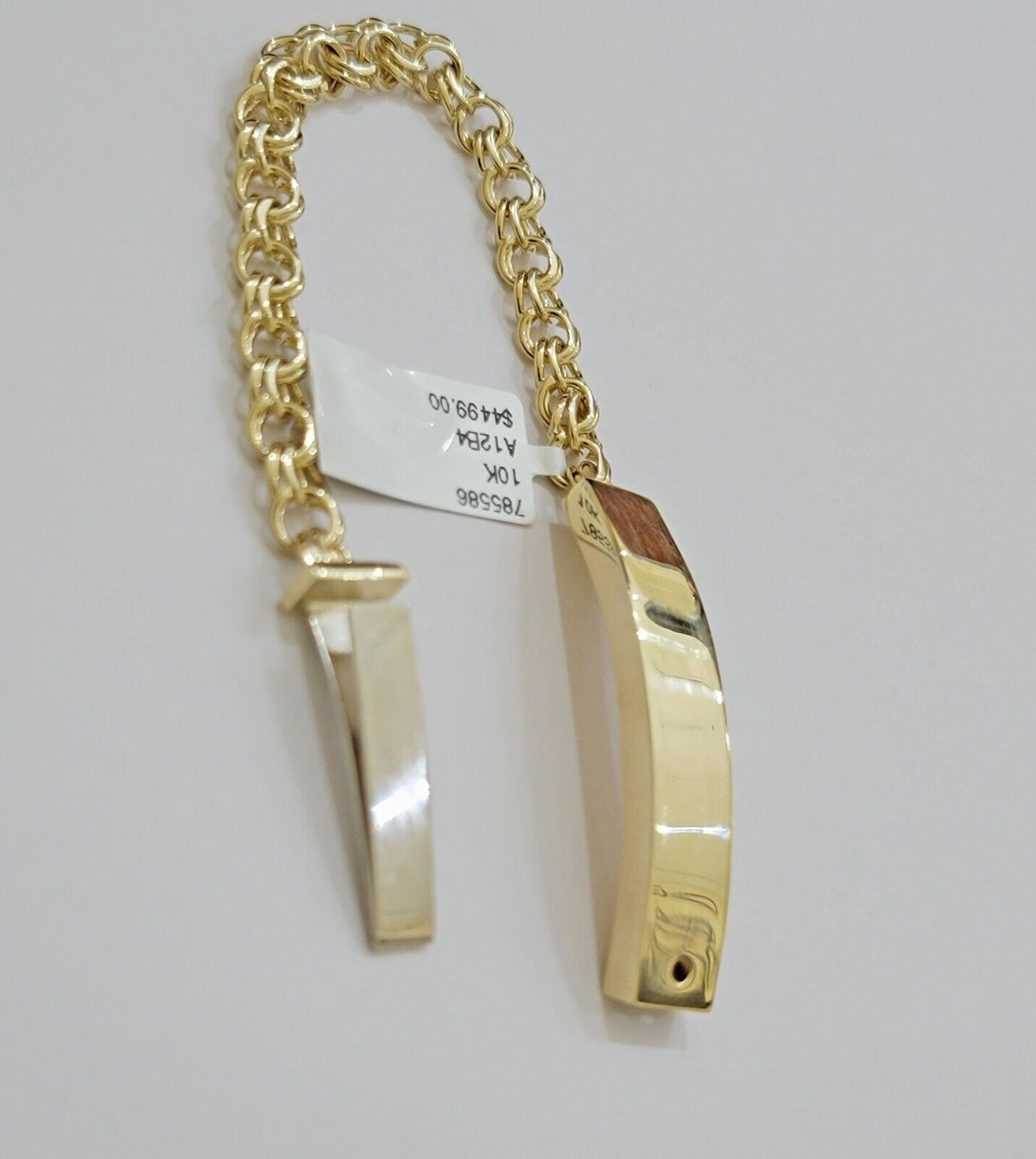 Real 10k Yellow Gold Bracelet Chino ID Name Plate 6.25" SOLID LINK KIDS / Women