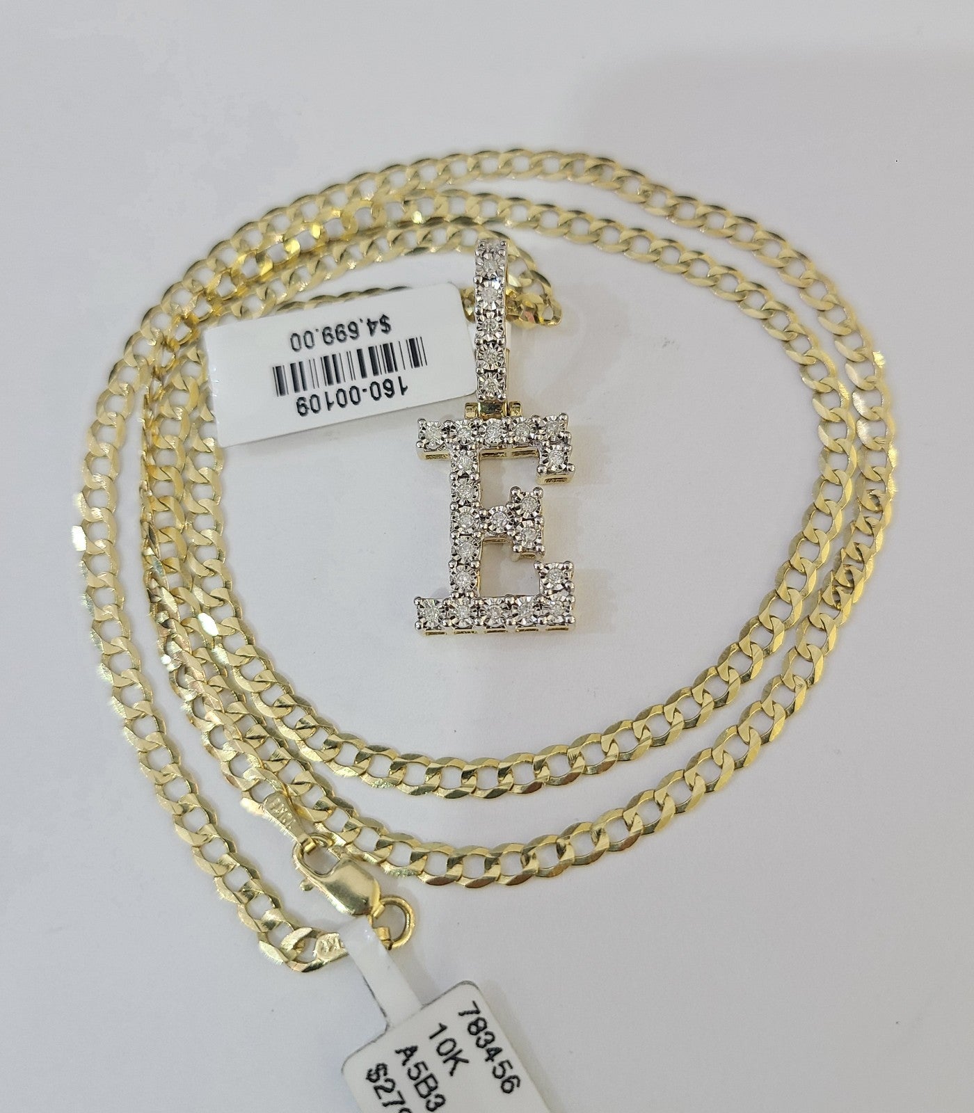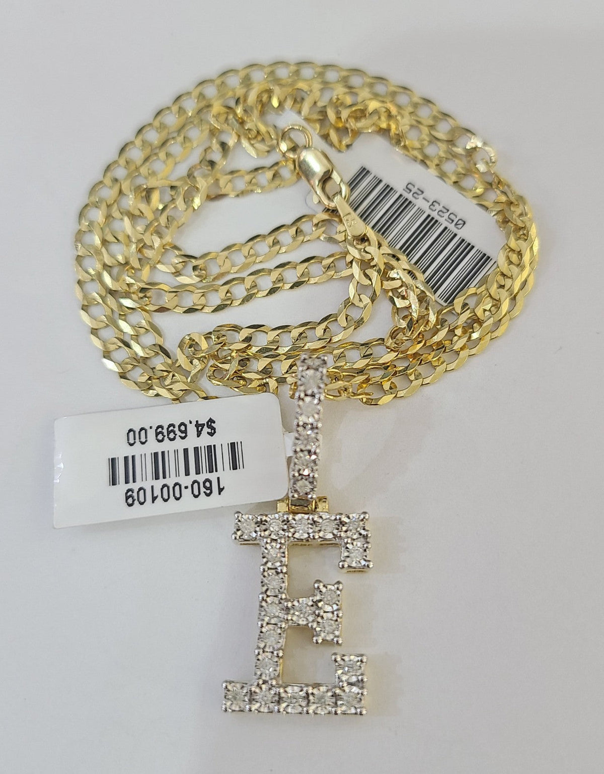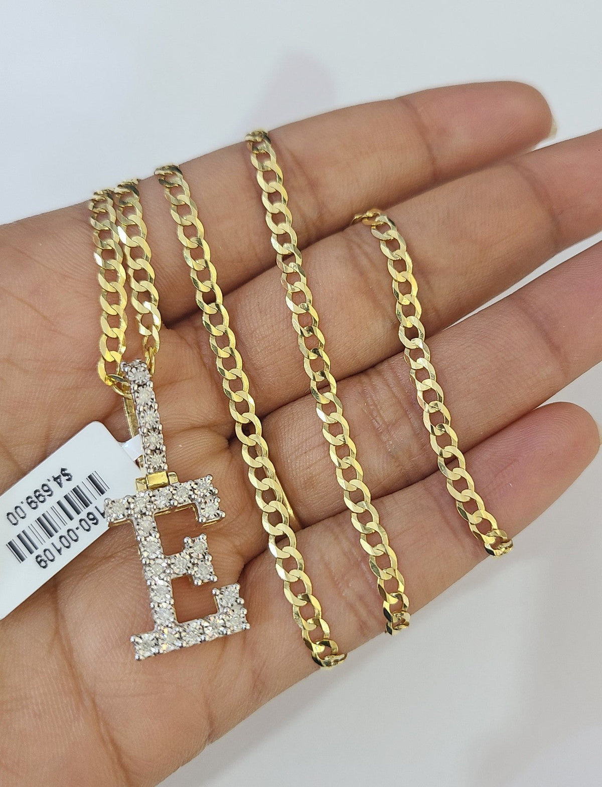 10k Gold Chain Necklace E Diamond Initial Pendant Set Cuban Curb 3mm 20"-30"