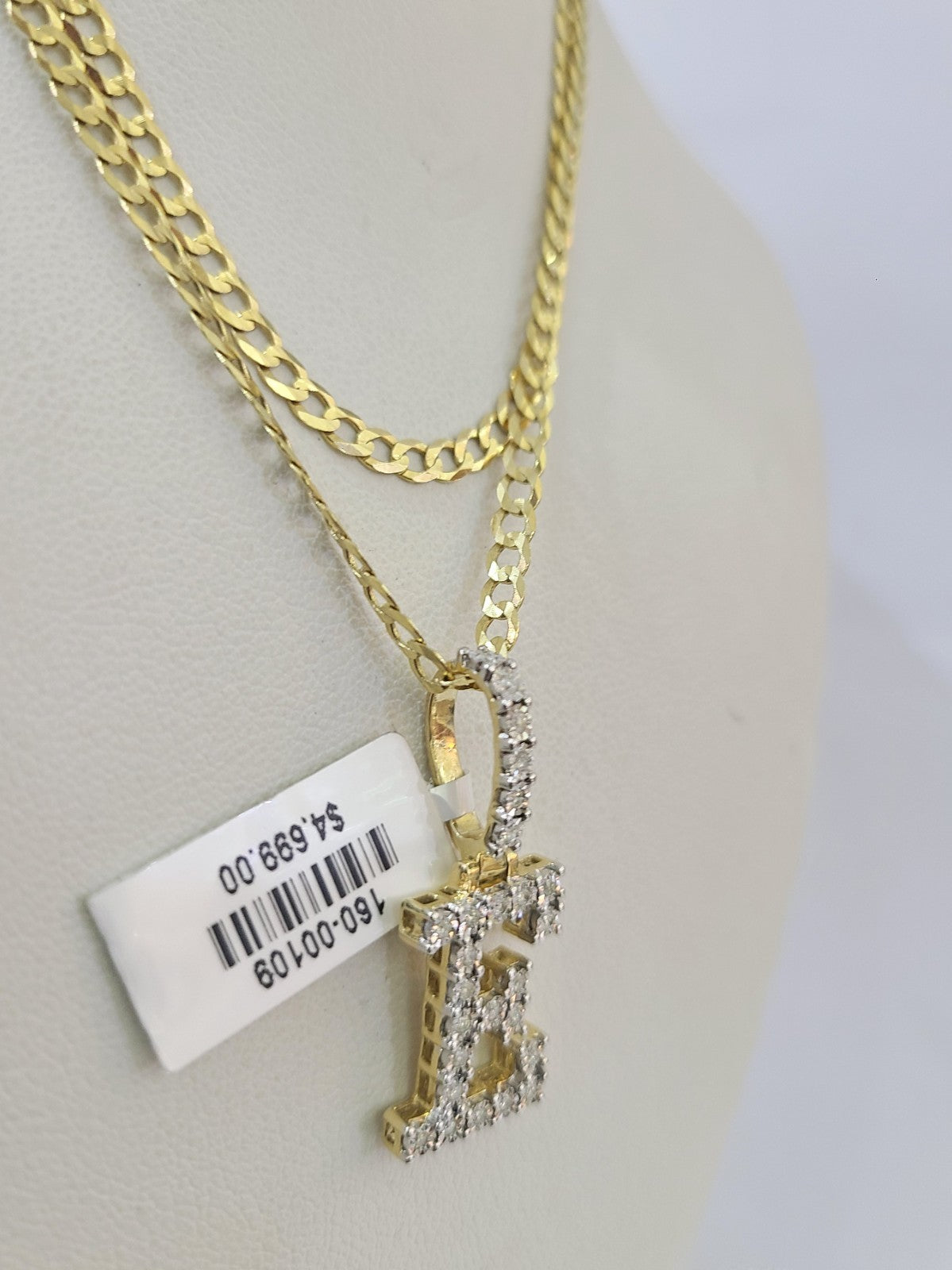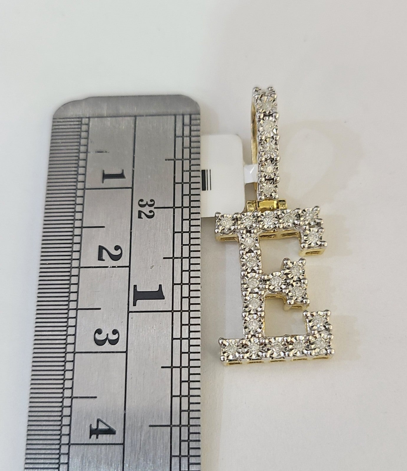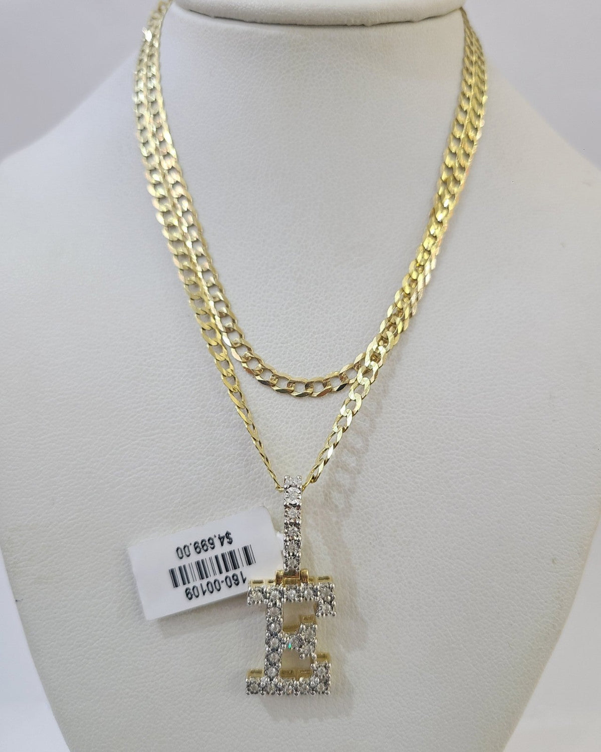 10k Gold Chain Necklace E Diamond Initial Pendant Set Cuban Curb 3mm 20"-30"