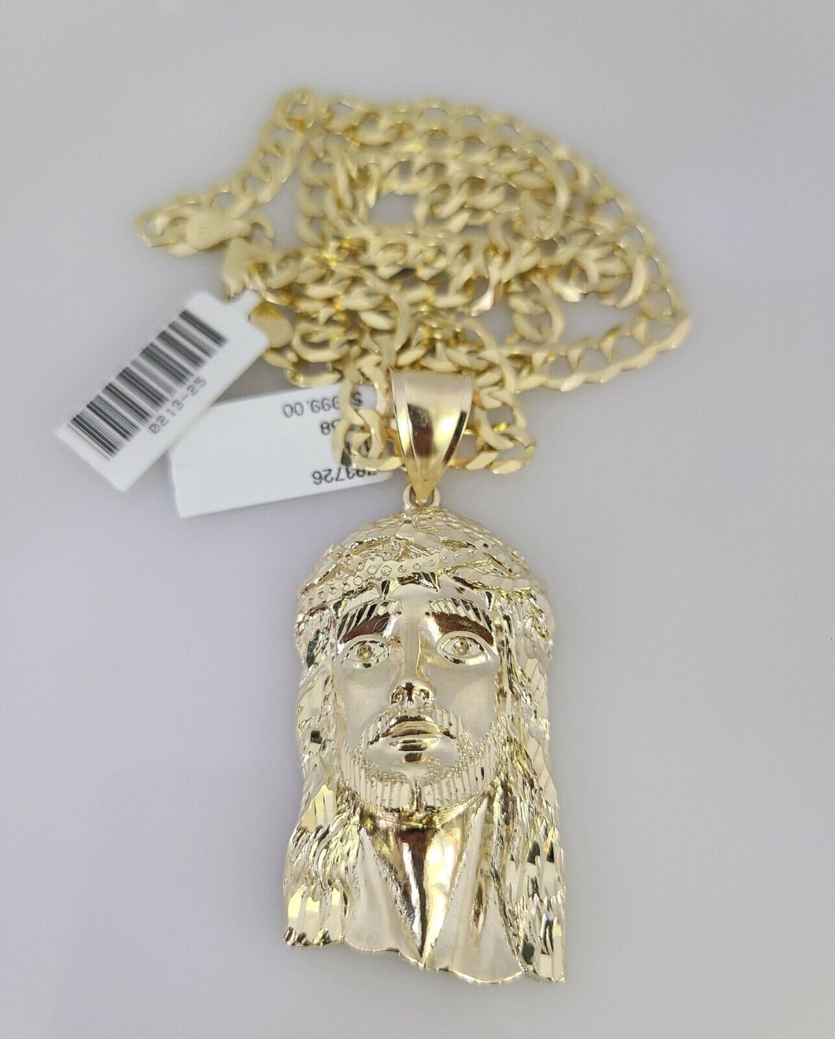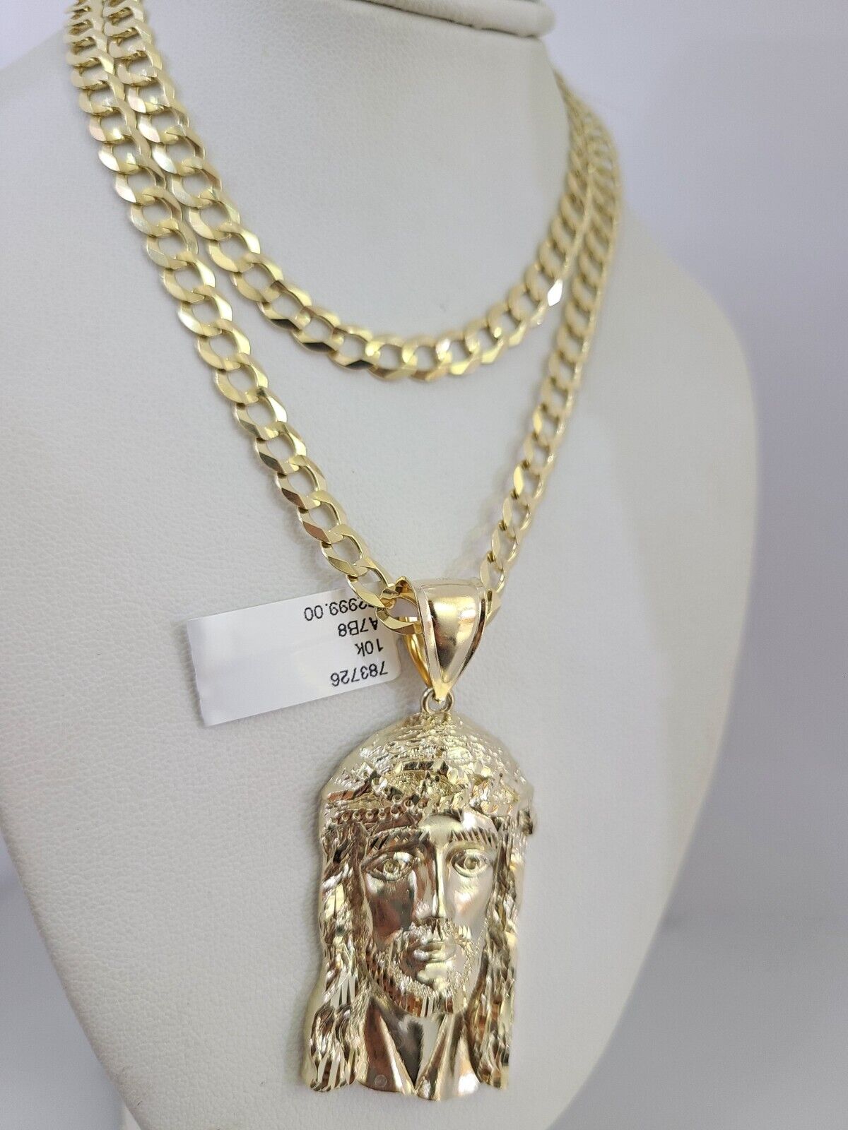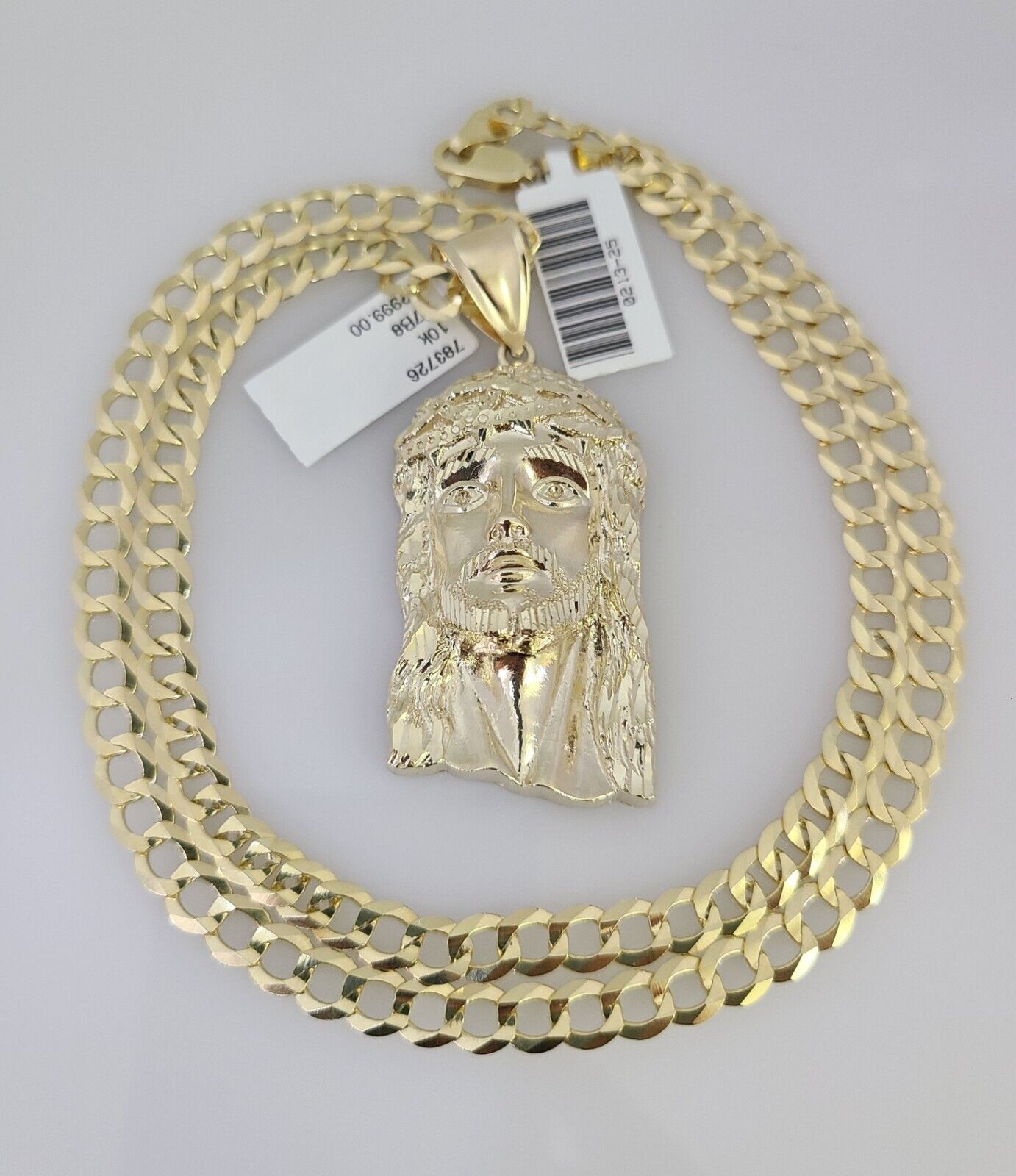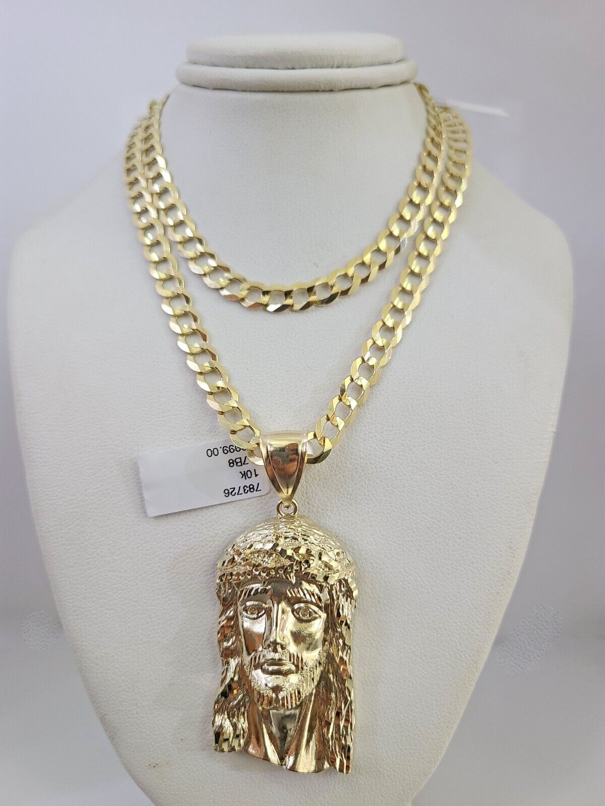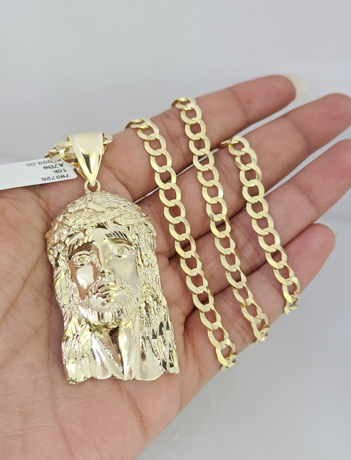 10k Gold Solid Cuban Curb Chain Necklace Jesus Head Pendant Set 6mm 20"-30"