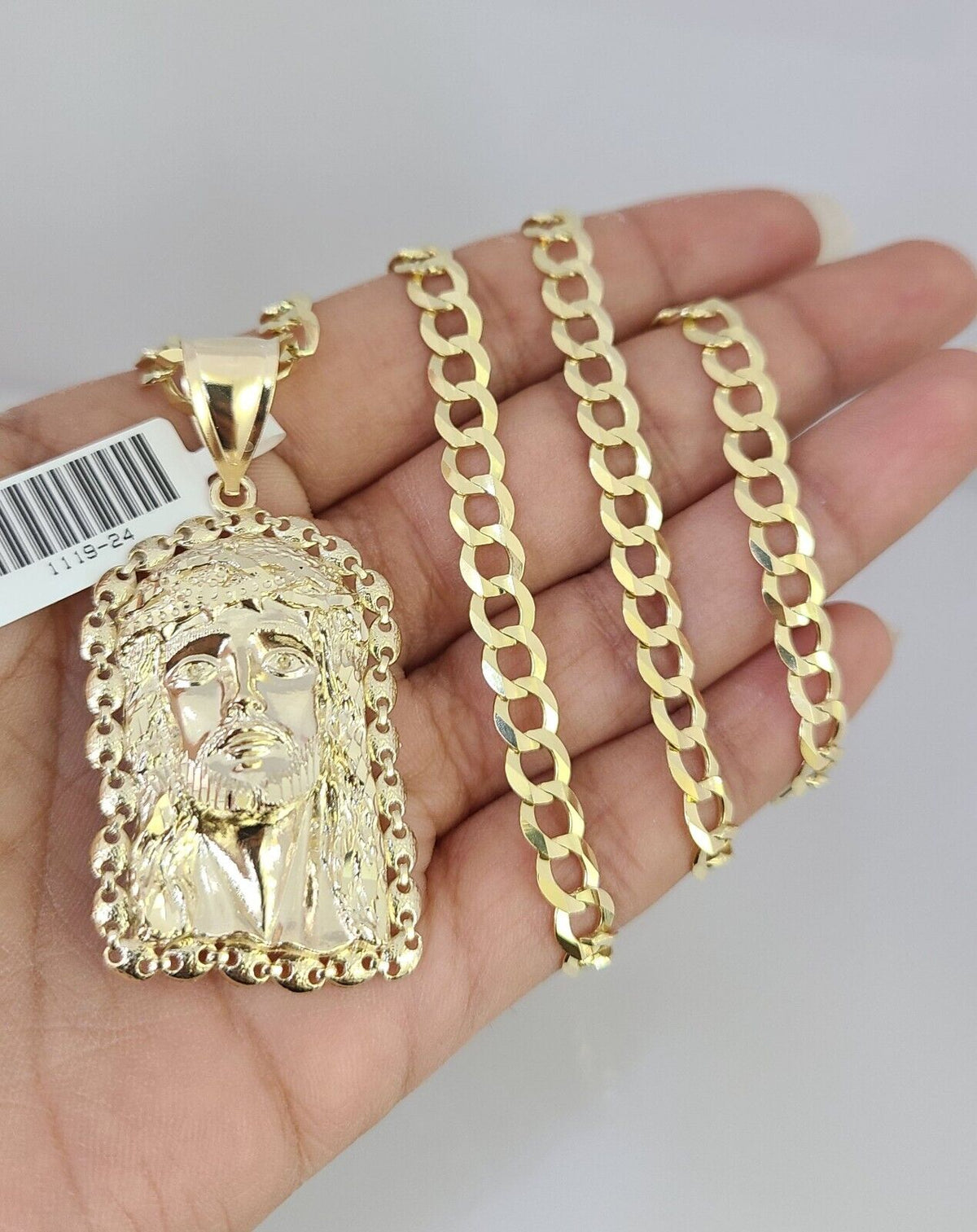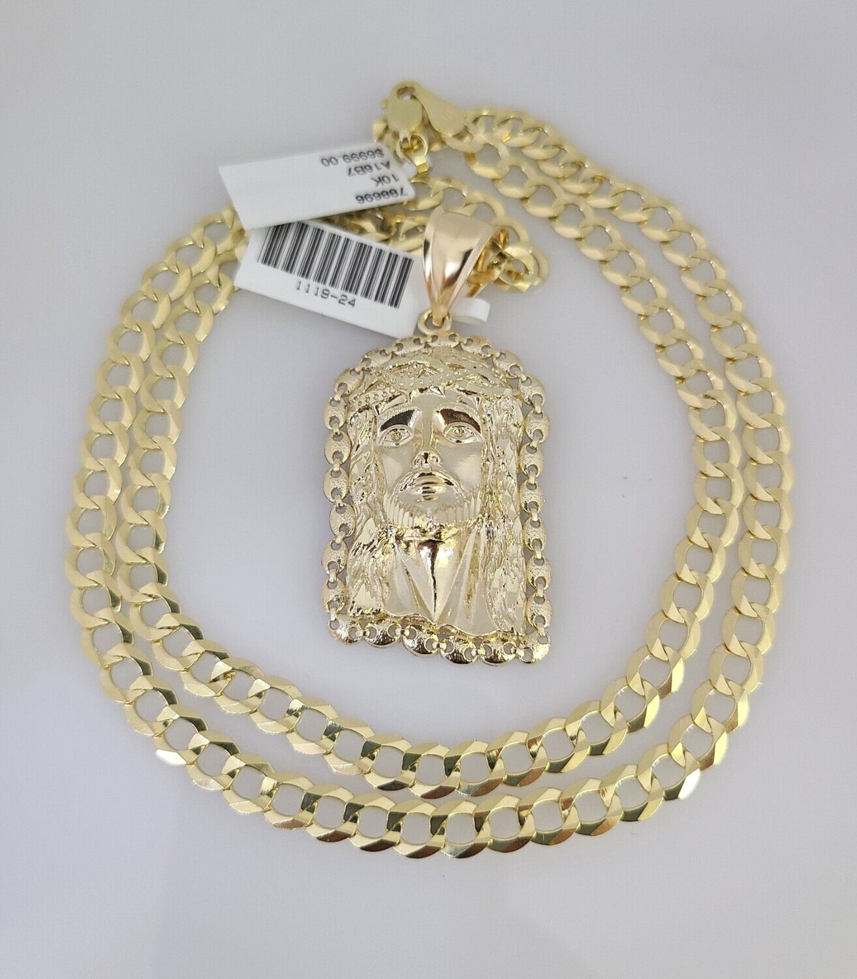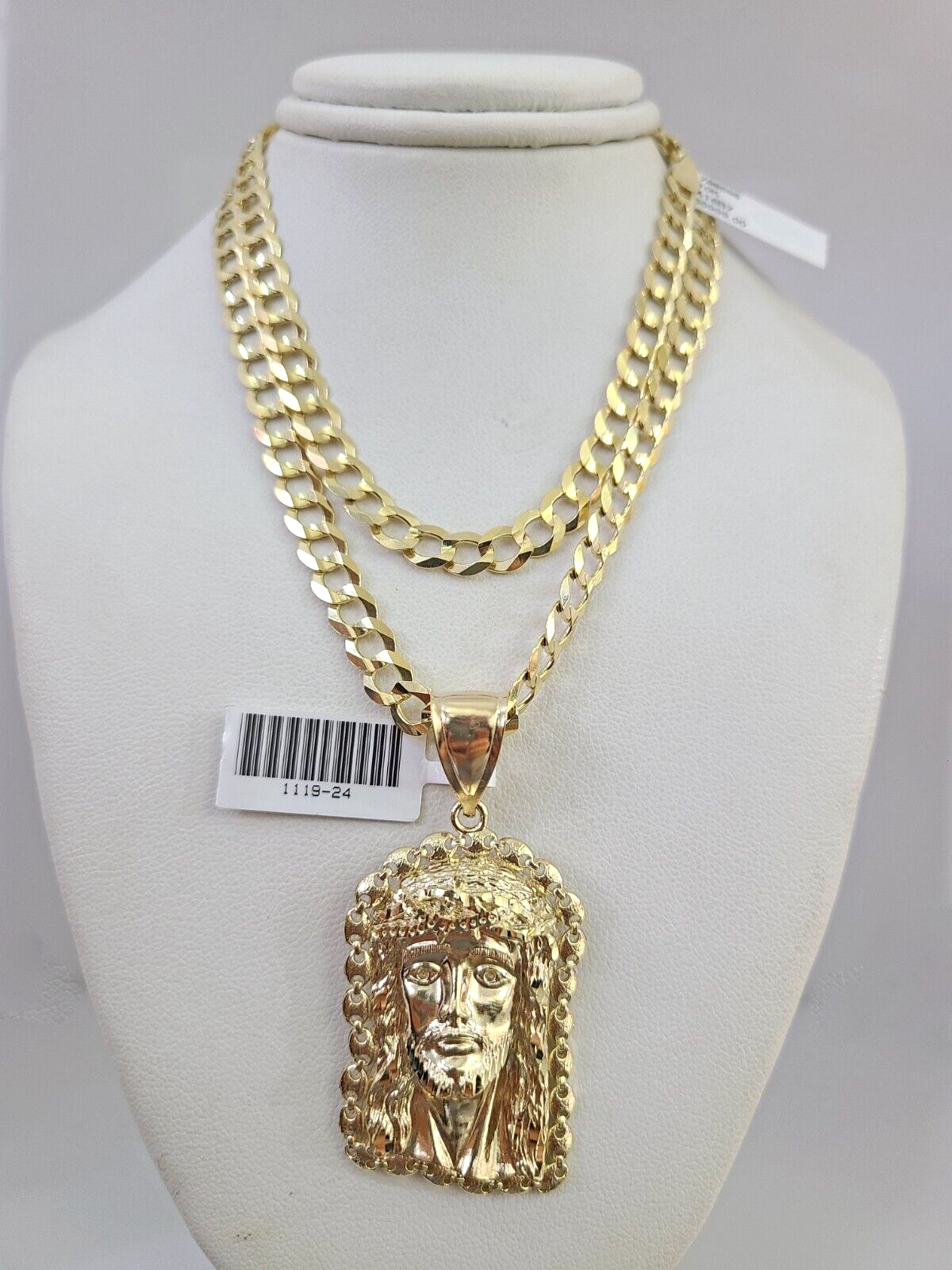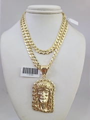 10k Gold Solid Cuban Curb Chain Necklace Jesus Head Pendant Set 6mm 20"-30"