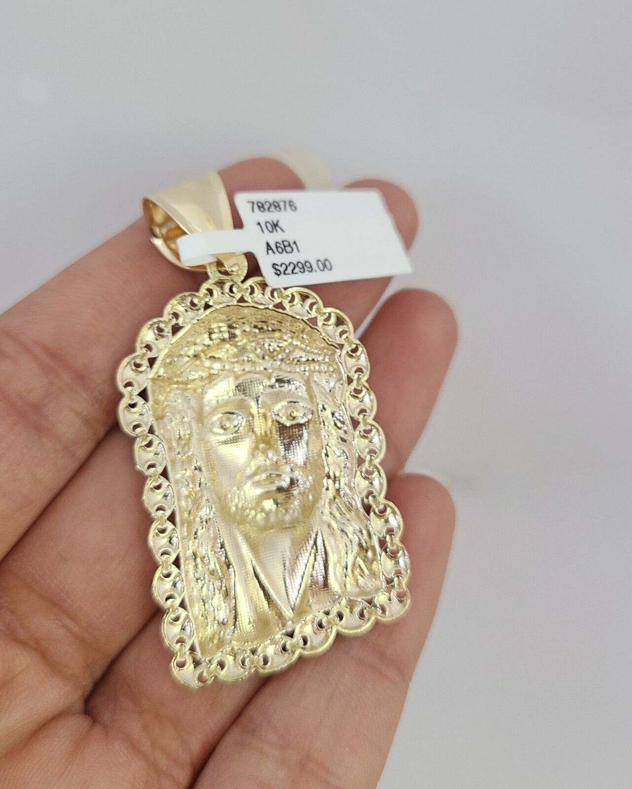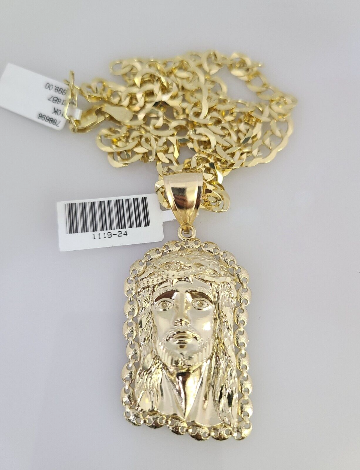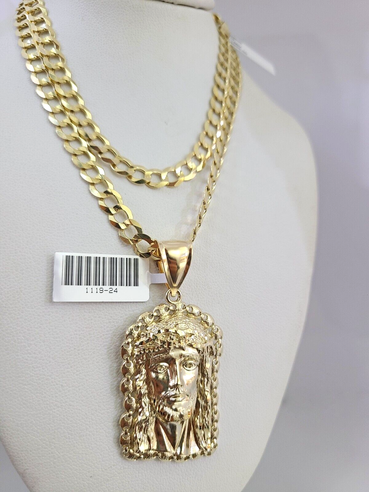 10k Gold Solid Cuban Curb Chain Necklace Jesus Head Pendant Set 6mm 20"-30"