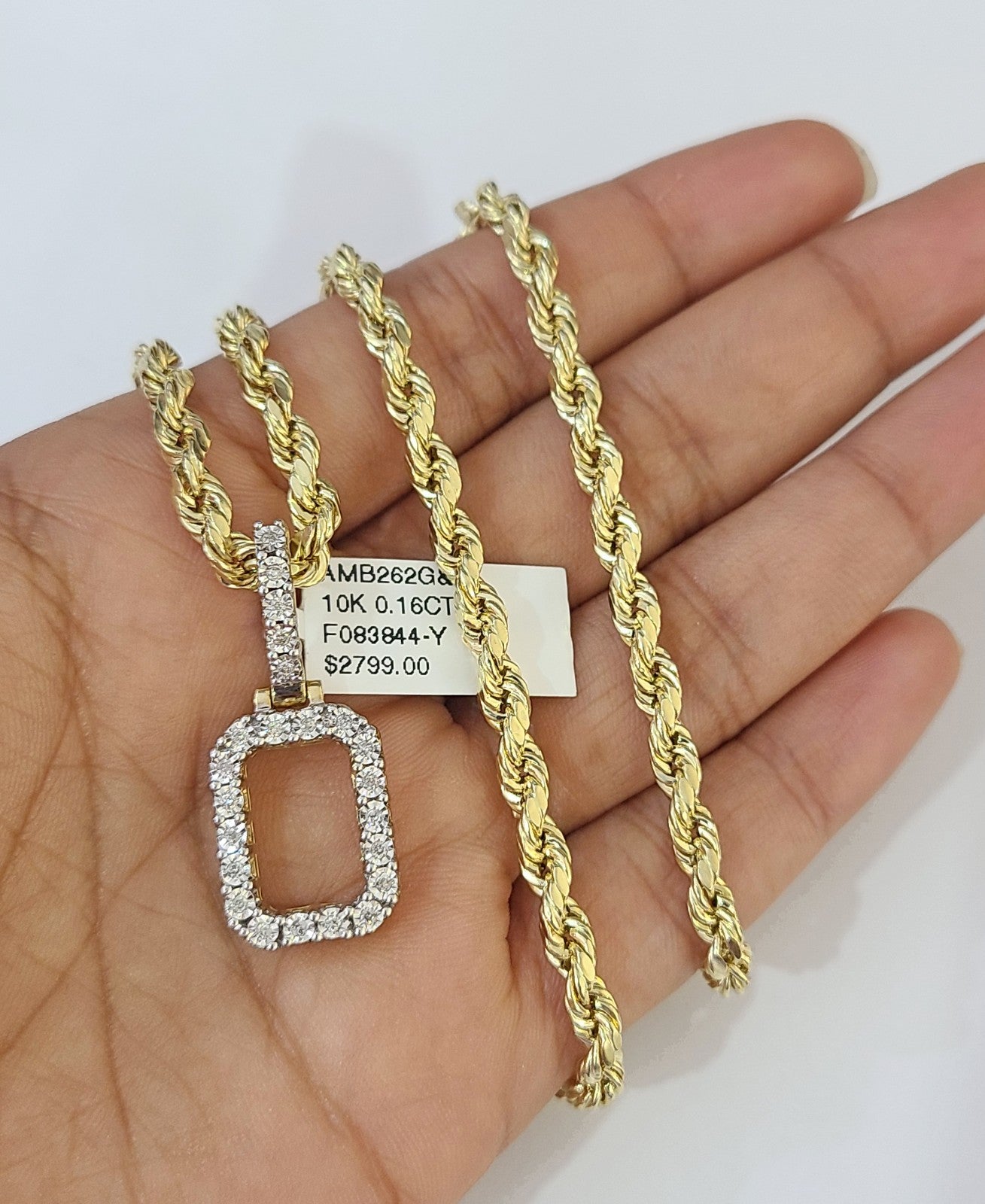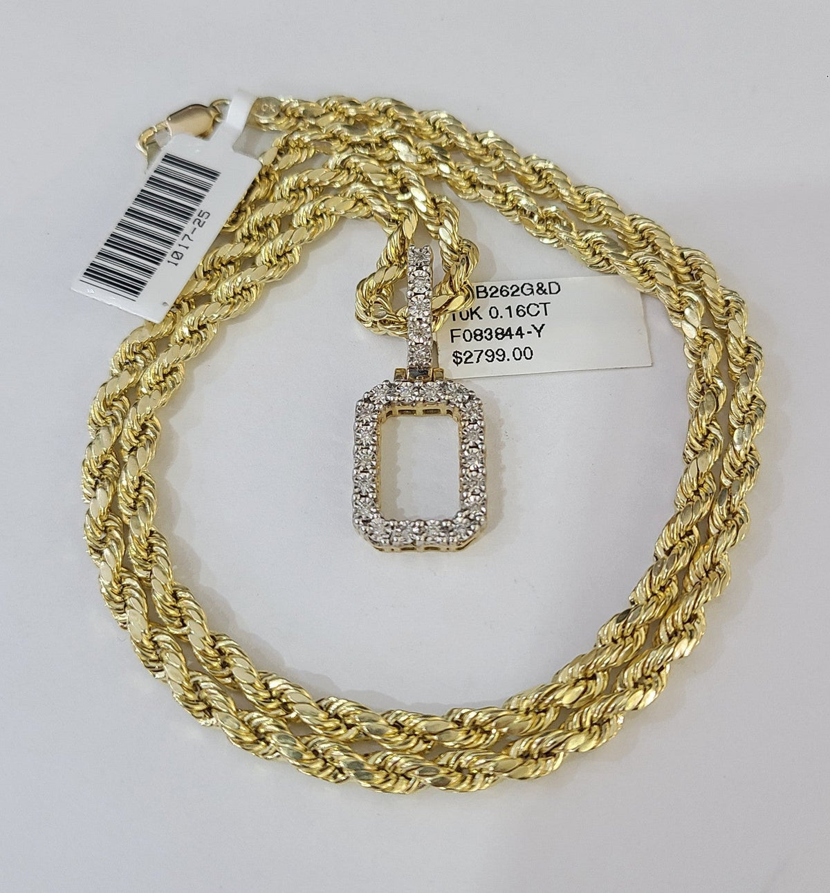 Genuine 10k Yellow Gold Rope Chain 20-30 inches 4mm Necklace with O initial Diamond Pendant as a SET. If you are not happy with the way it looks or feels, we do offer 30 - Days FREE Return shipping. Contact us for more information.