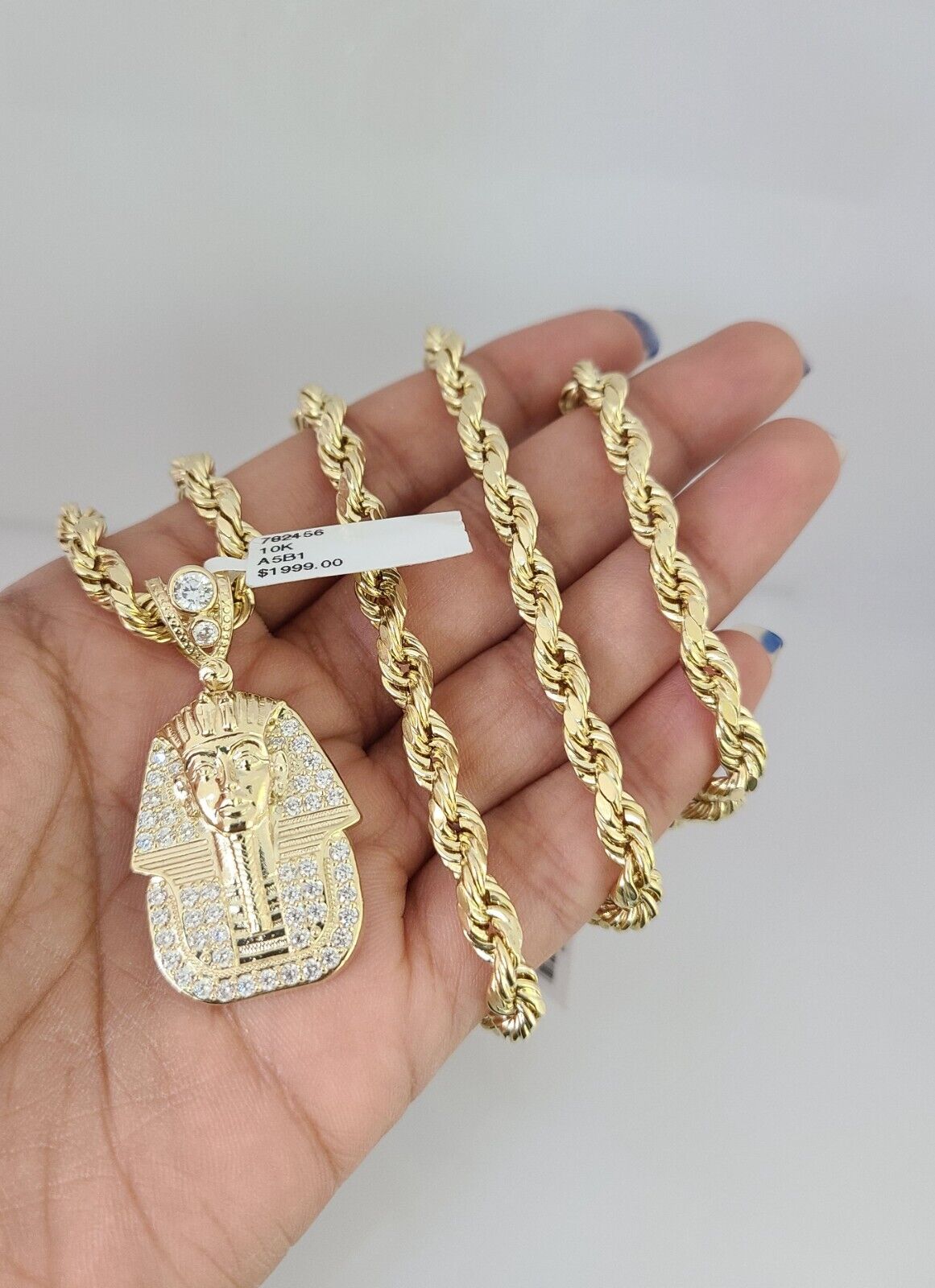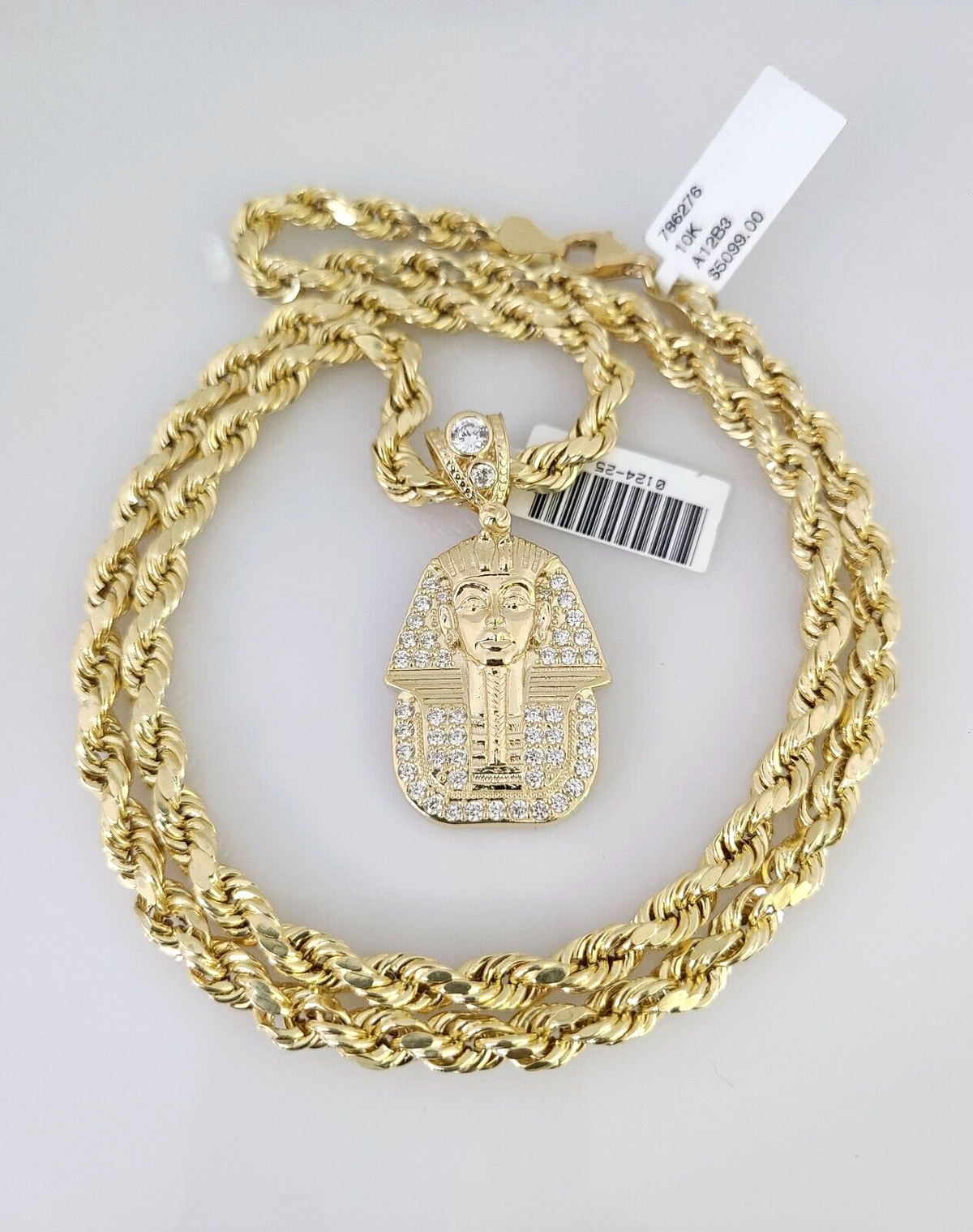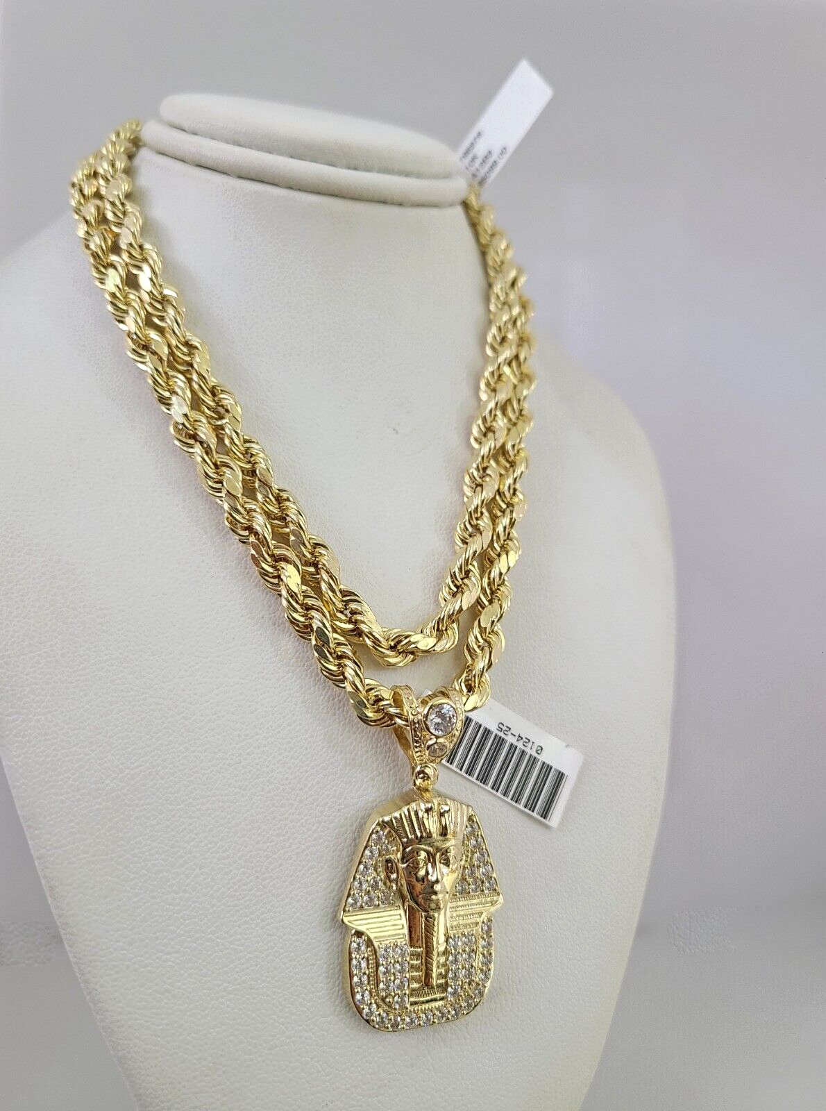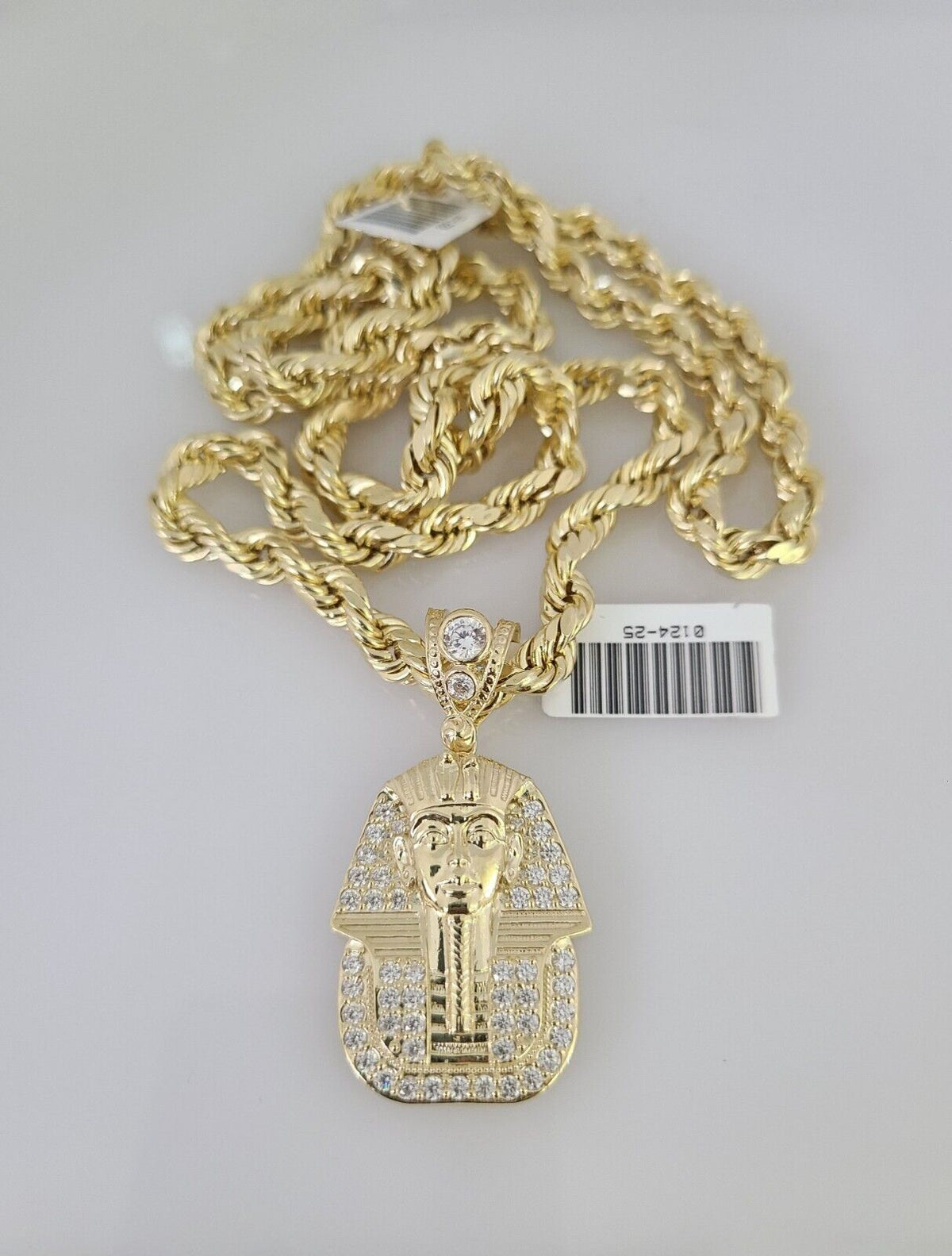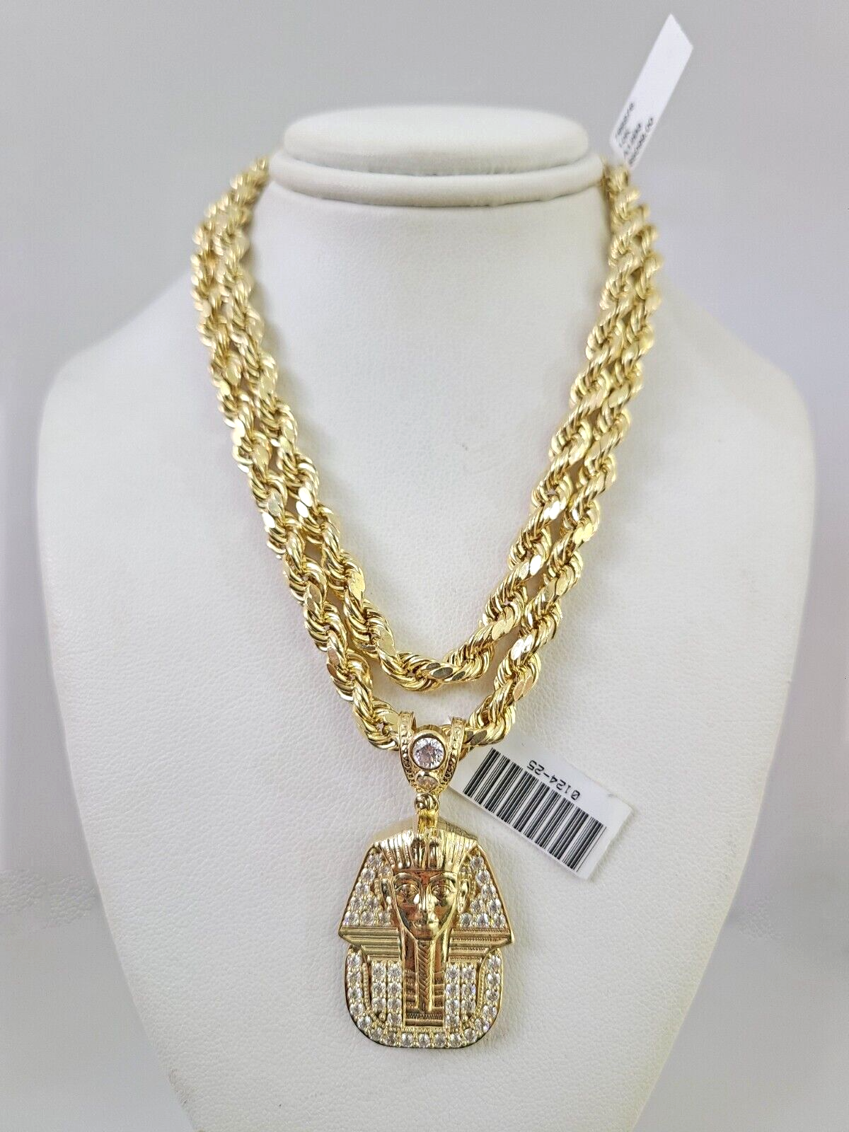10kt Gold Rope Chain Pharaoh Pendant Set 18"-30'' Inch 6mm Necklace