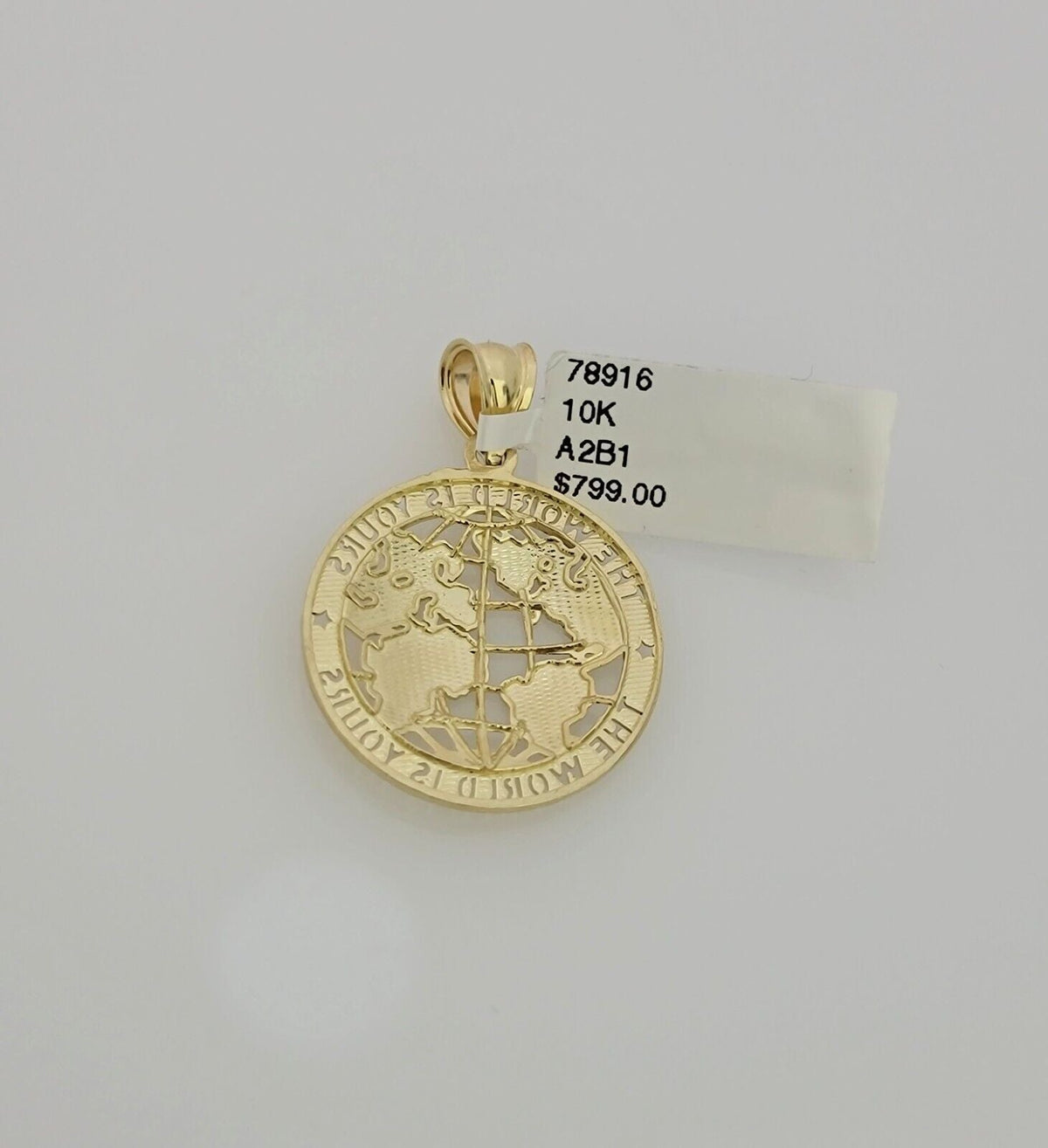 Real 10k Gold Chain Pendant SET World Is Your Charm Rope Necklace 3mm 24 Inch