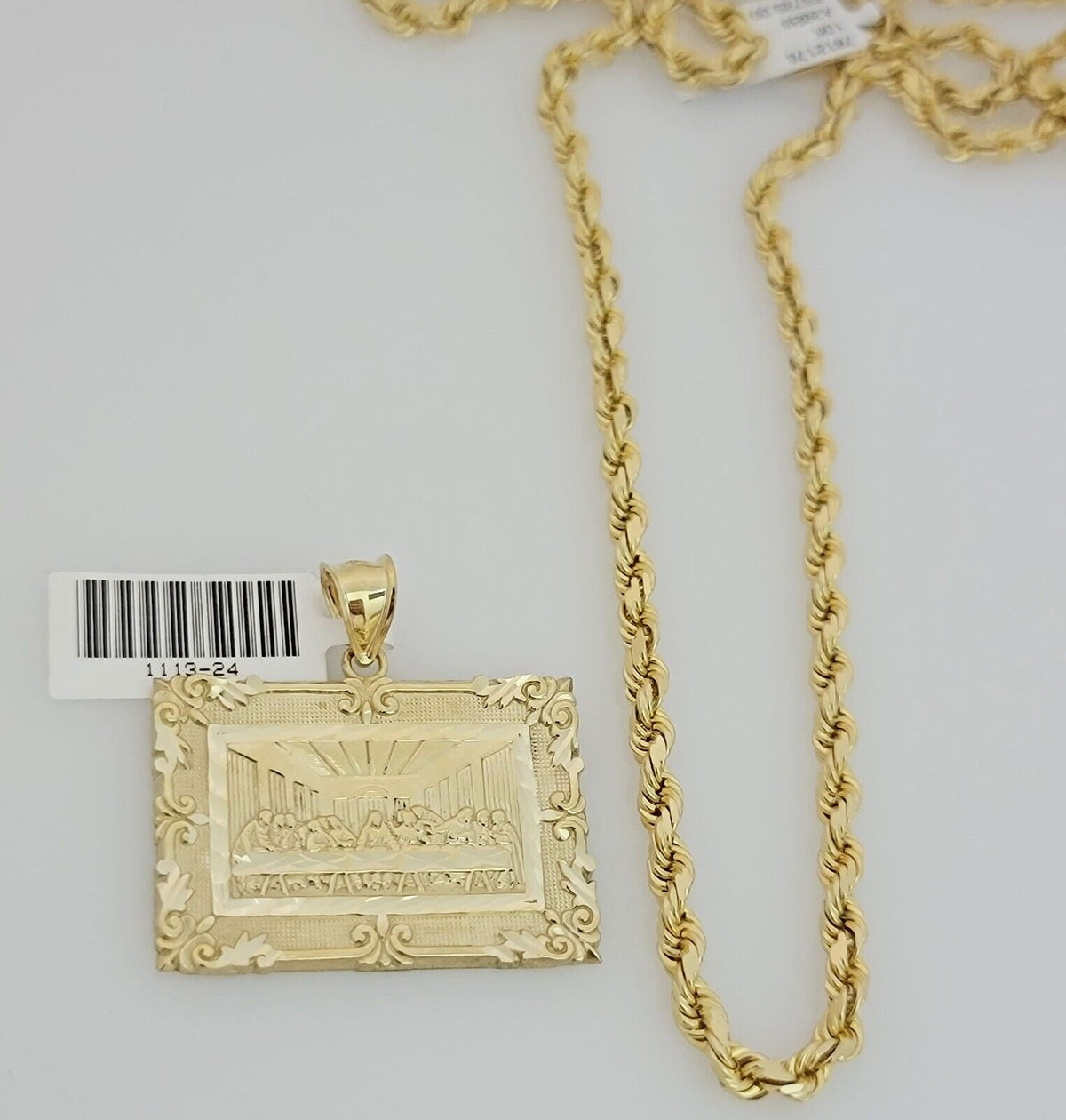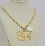 Real 10k Gold Chain Solid Rope Necklace Pendant SET Last supper Charm 4mm 26"