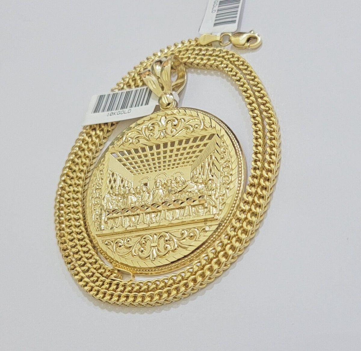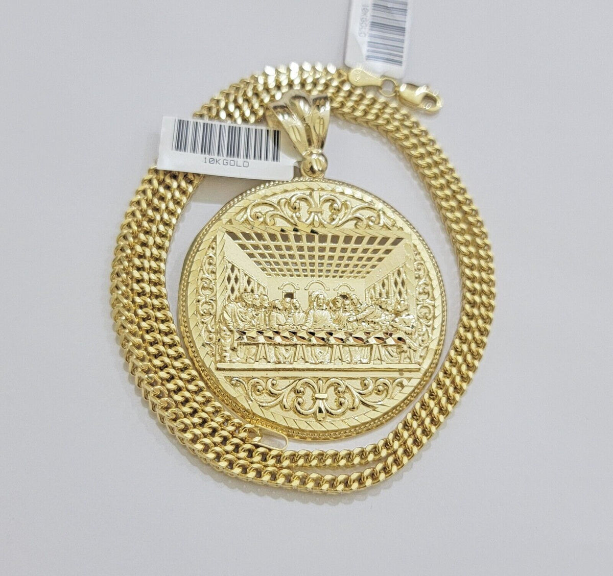 REAL 10k Gold Franco Chain Necklace 24 Inch Last Supper Pendant SET 10KT For Men