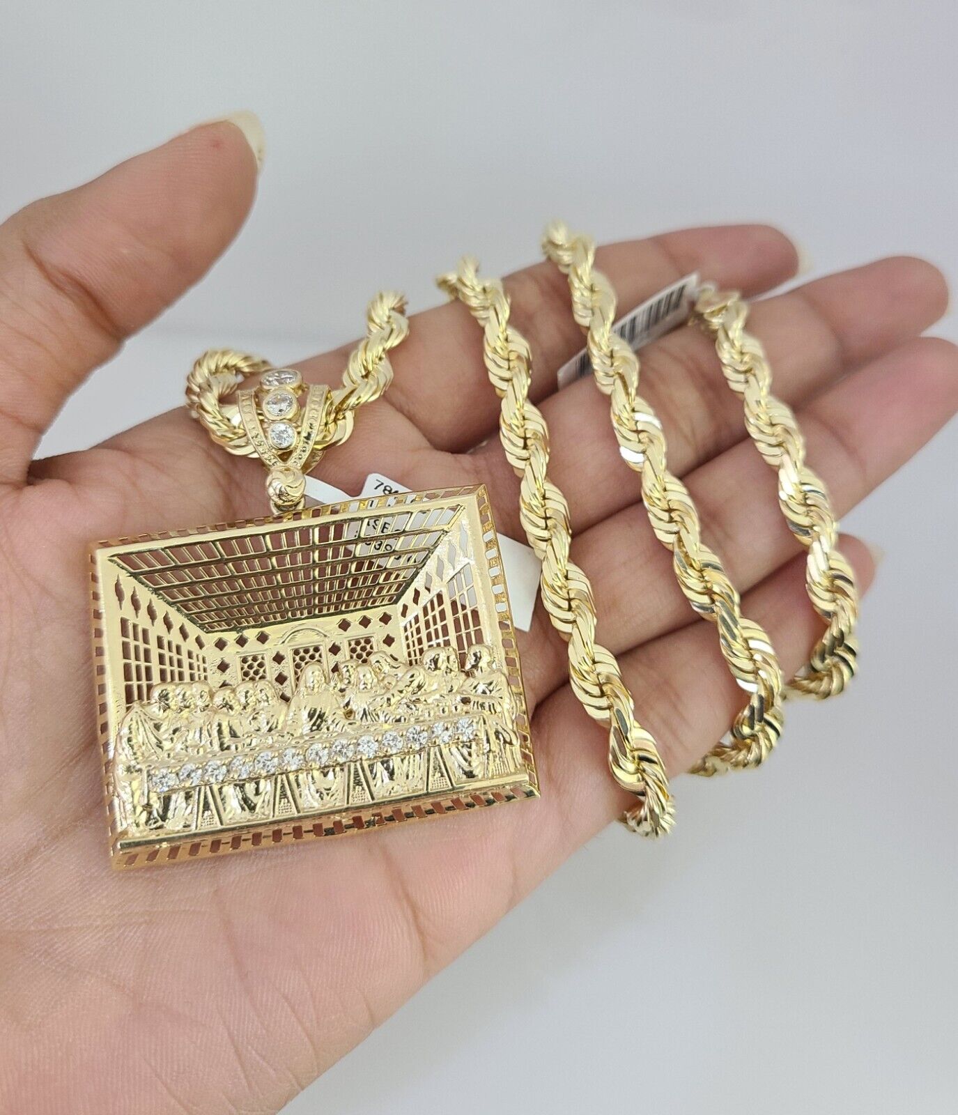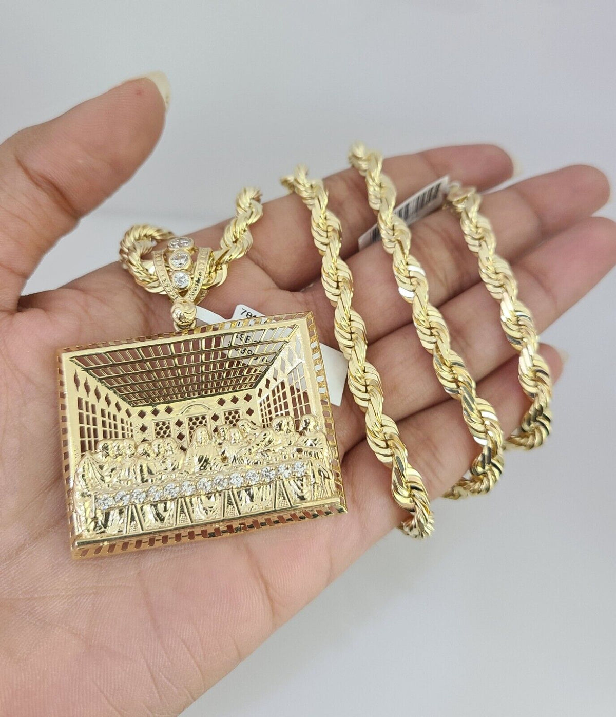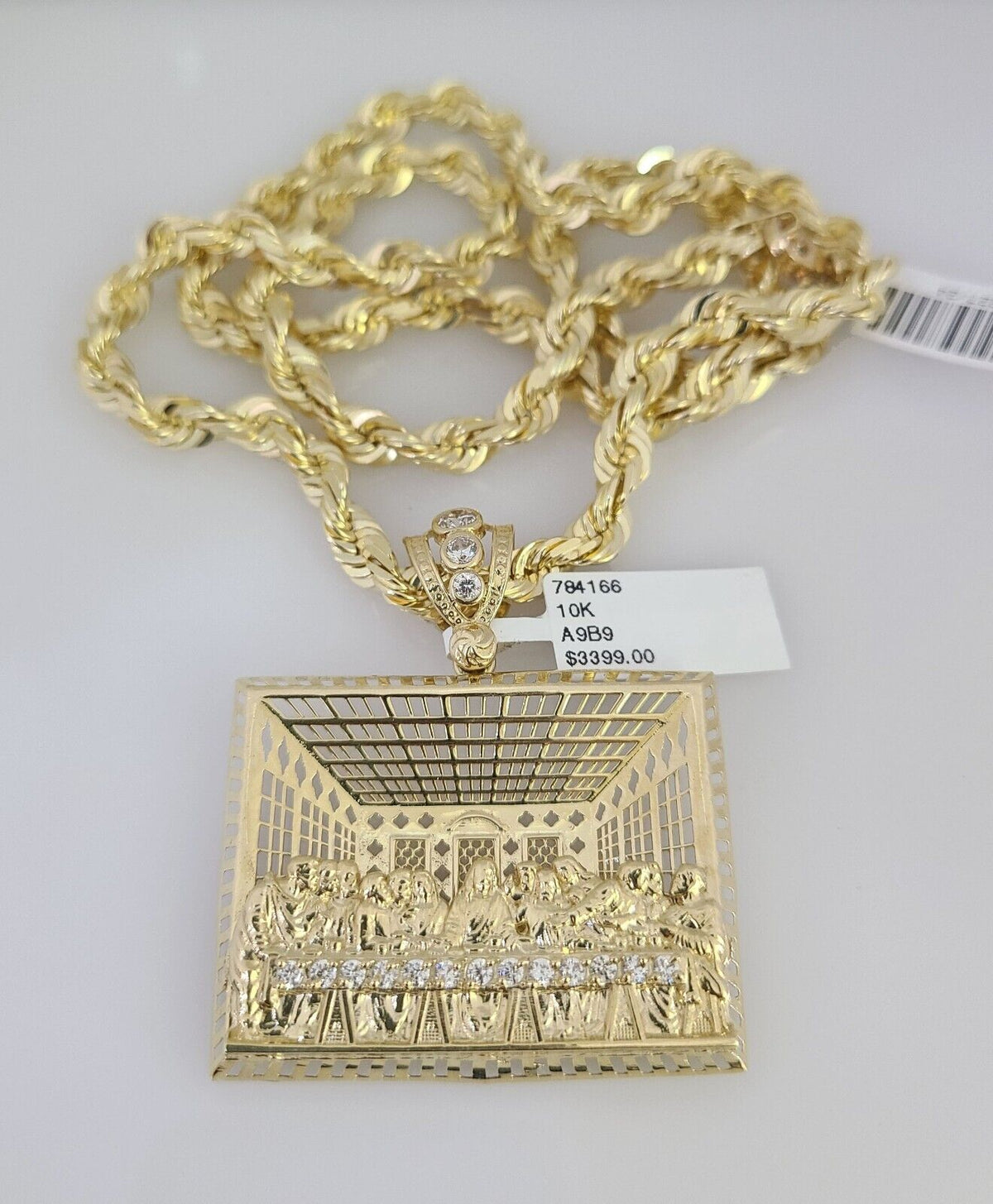 Genuine 10k Yellow Gold Solid Rope Chain 20-30 Inch 6mm Necklace With Last Supper Charm design as a SET. The Various lengths of the Chain are 20-30 Inch . If you are not happy with the way it looks or feels, we do offer 30 - Days FREE Return shipping. Contact us for more information.