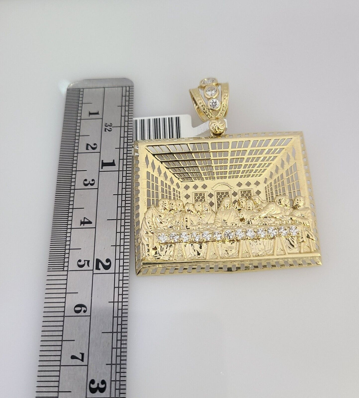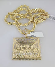 10k Yellow Gold Solid Rope Chain Circular Last Supper Charm Pendant 20"-30'' Inch Necklace